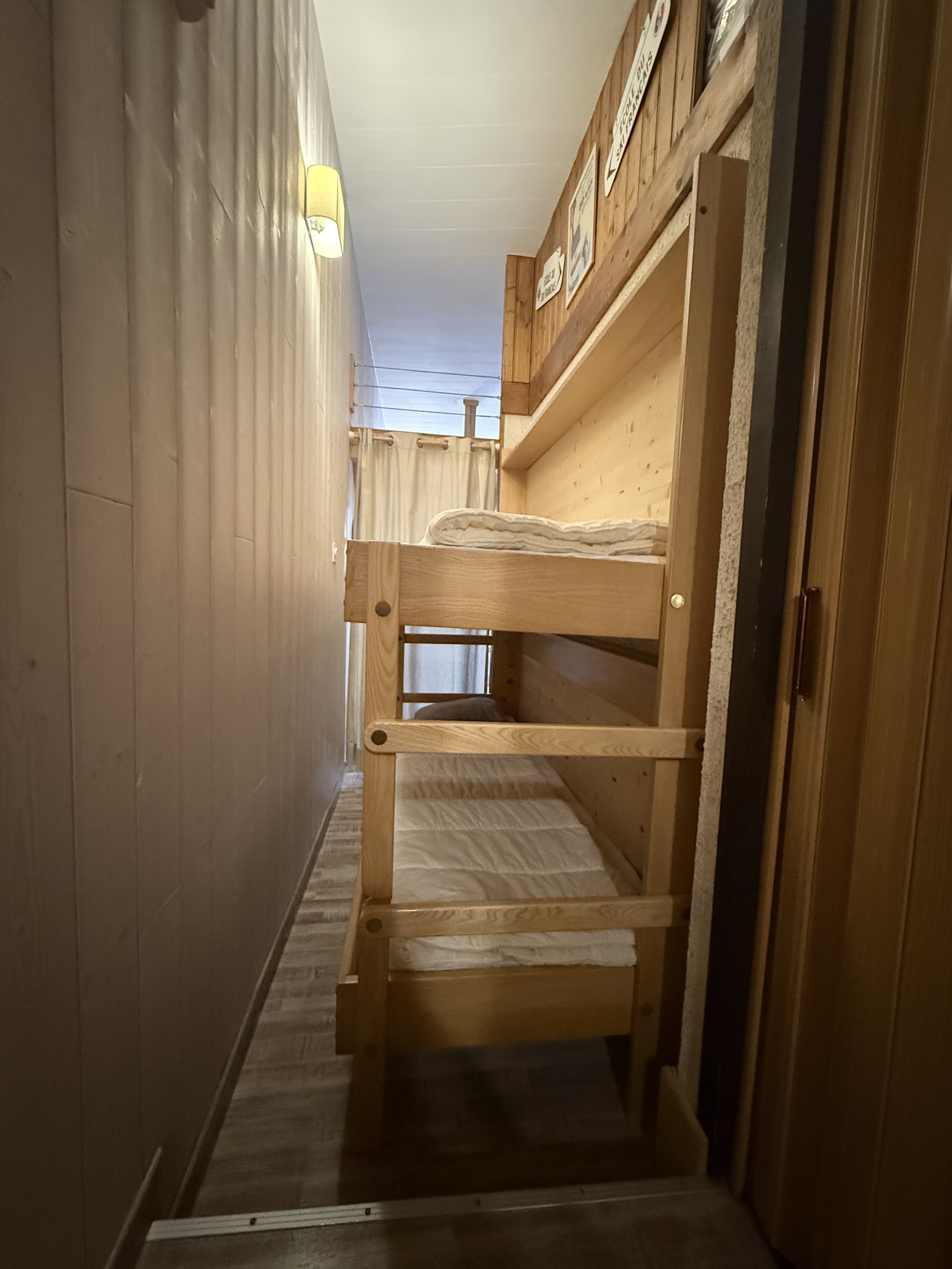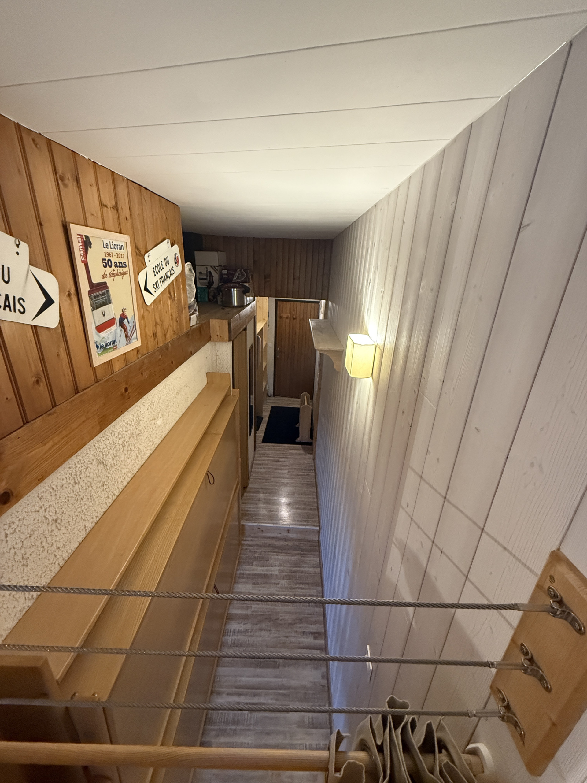 On the mezzanine level is the sleeping area with a double bed in 140x190. The bunk bed with 70x190 beds is located in the entrance corridor of the accommodation and are foldable. The latter also gives you access to the bathroom which consists of a shower and a toilet. A hairdryer will be at your disposal. There is no washing machine in this accommodation.