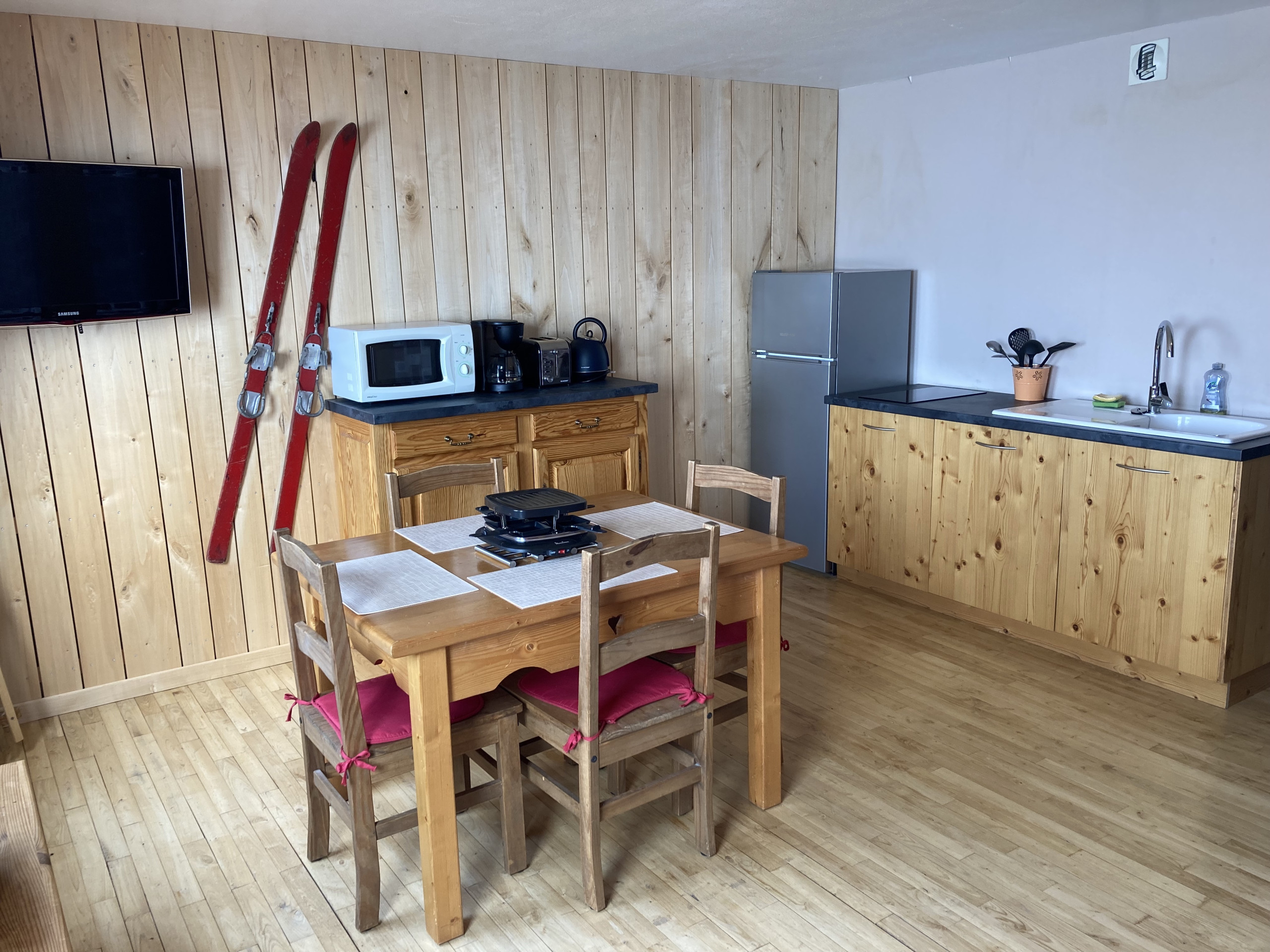 Decorated in a mountain style, this accommodation consists of an entrance where you will find numerous coat hooks to hang jackets and sports clothing, ski gear... You will also have a washroom with shower, washbasin, hairdryer, and a separate toilet in this space.