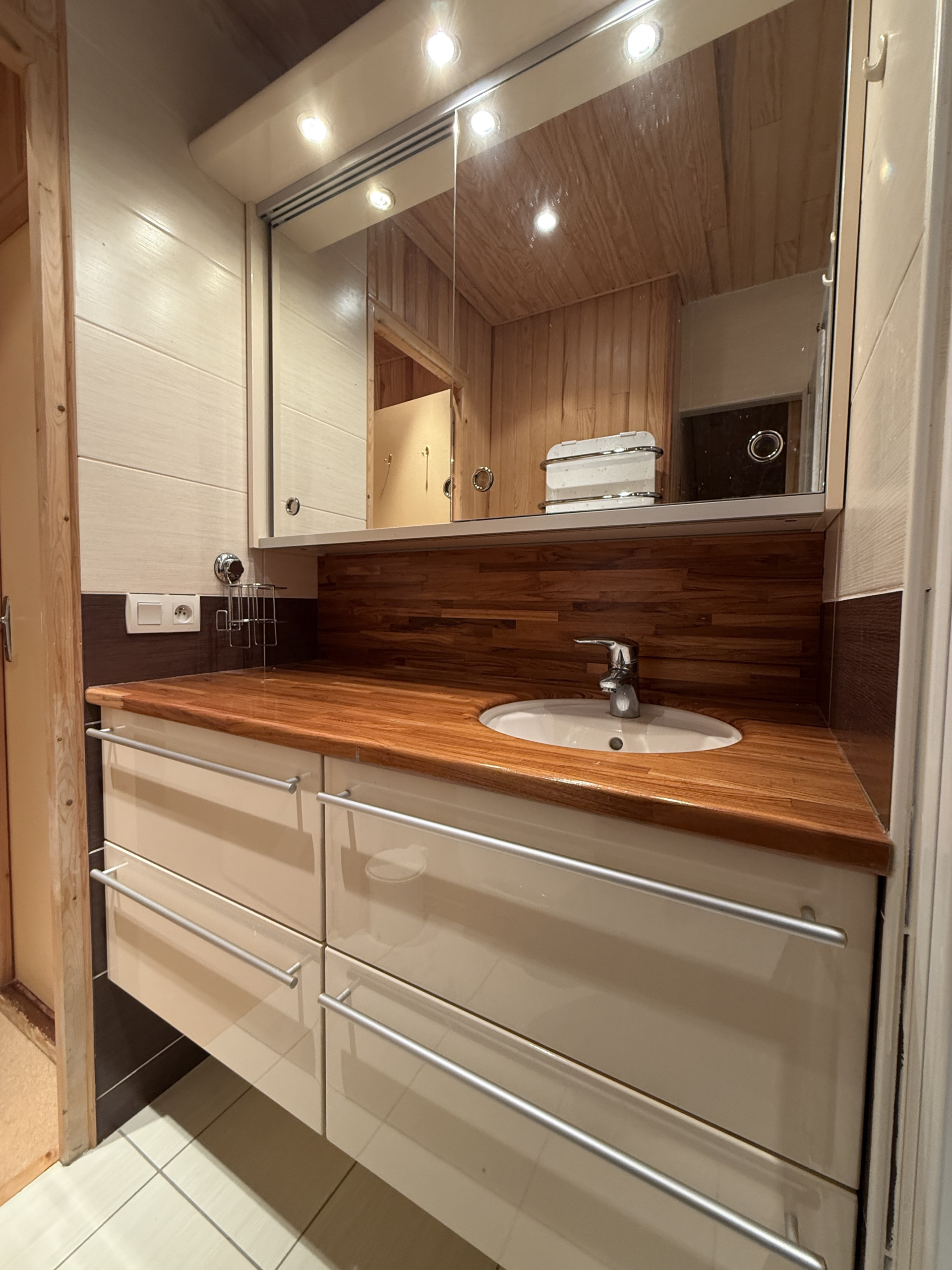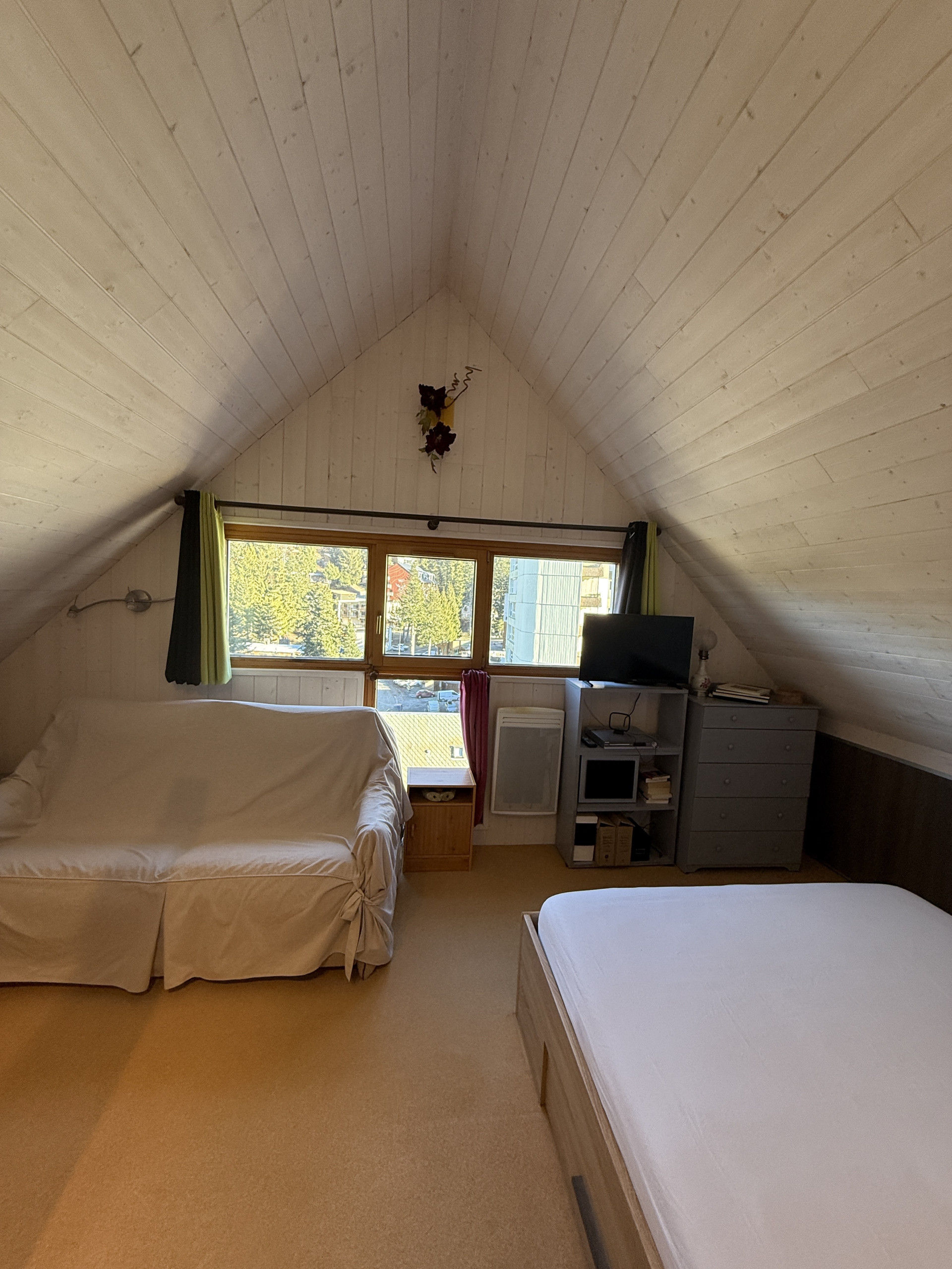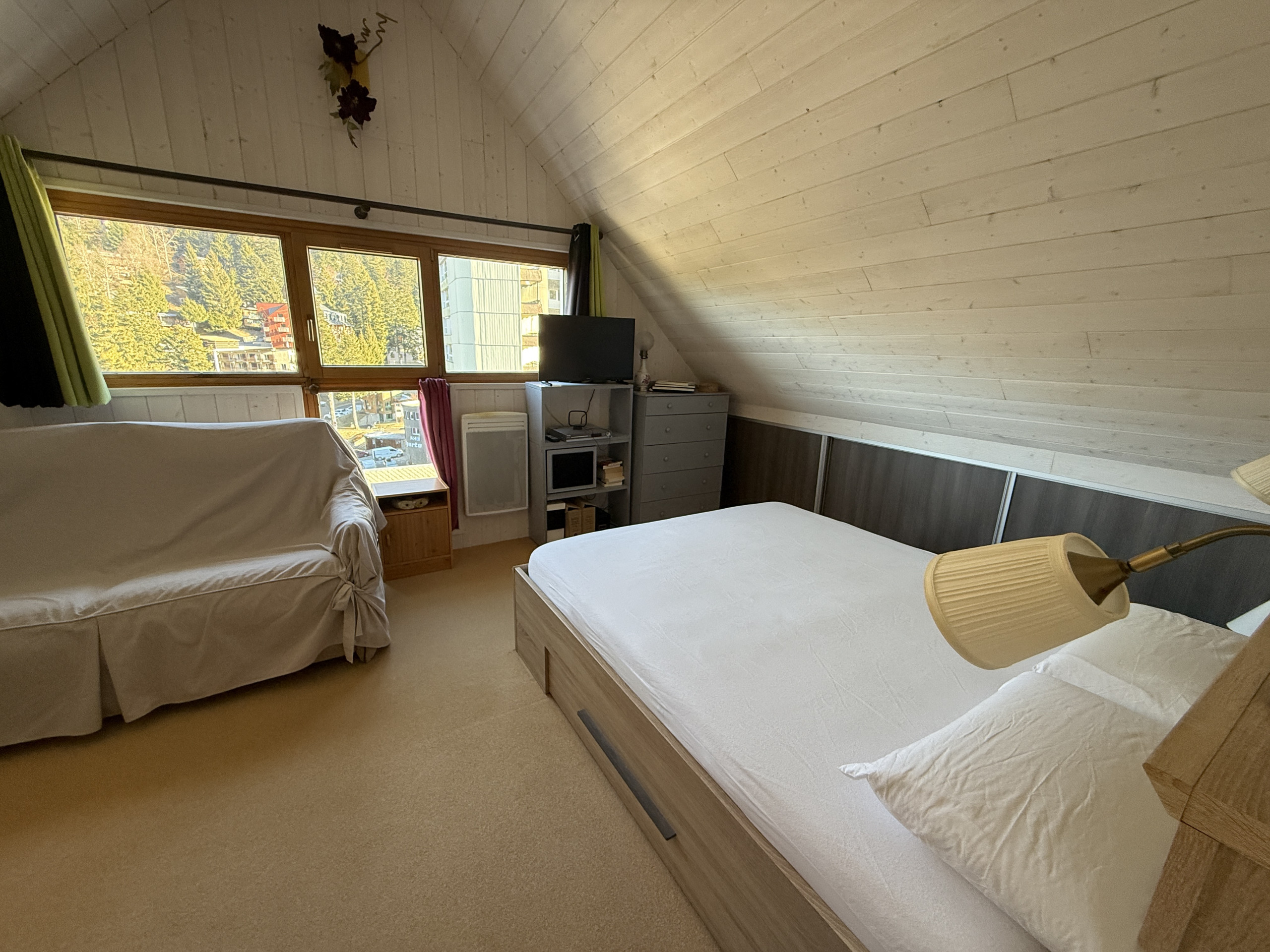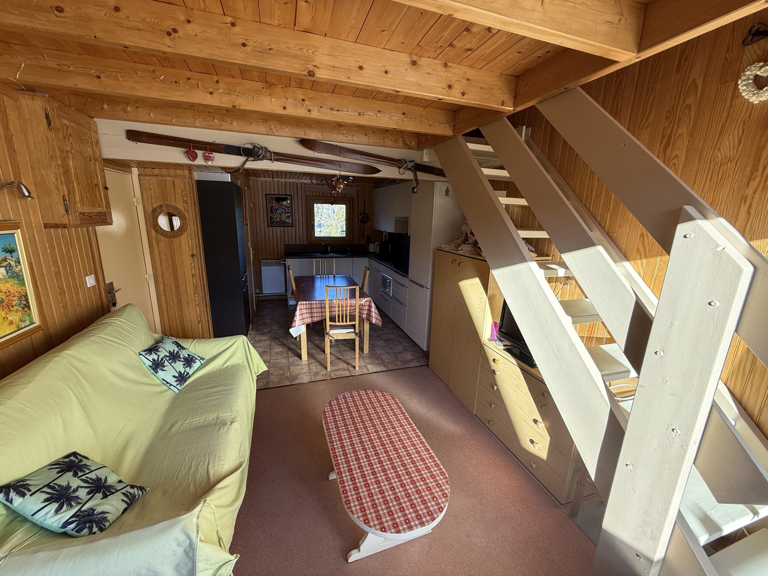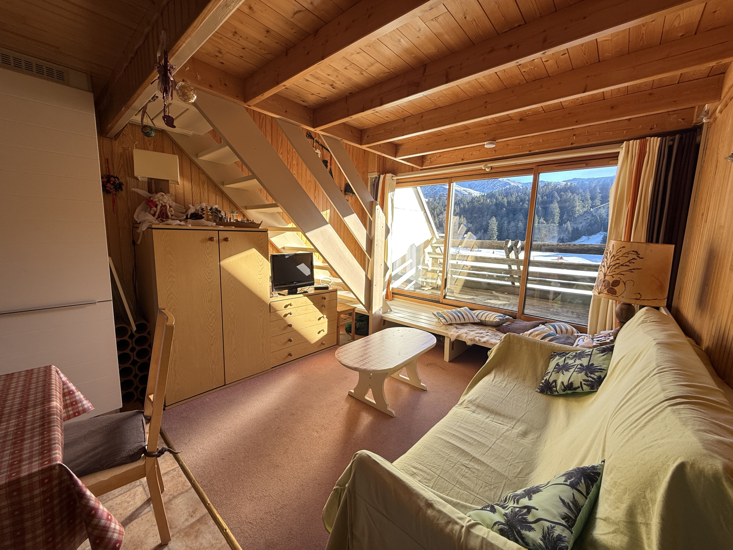 On the first level, you will find the living room dining area open to the fitted kitchen. A balcony with a view of the Lioran resort centre and mountains offers a true change of scenery. The very bright living area is perfectly functional. A utility room passage is also present as well as an independent toilet.