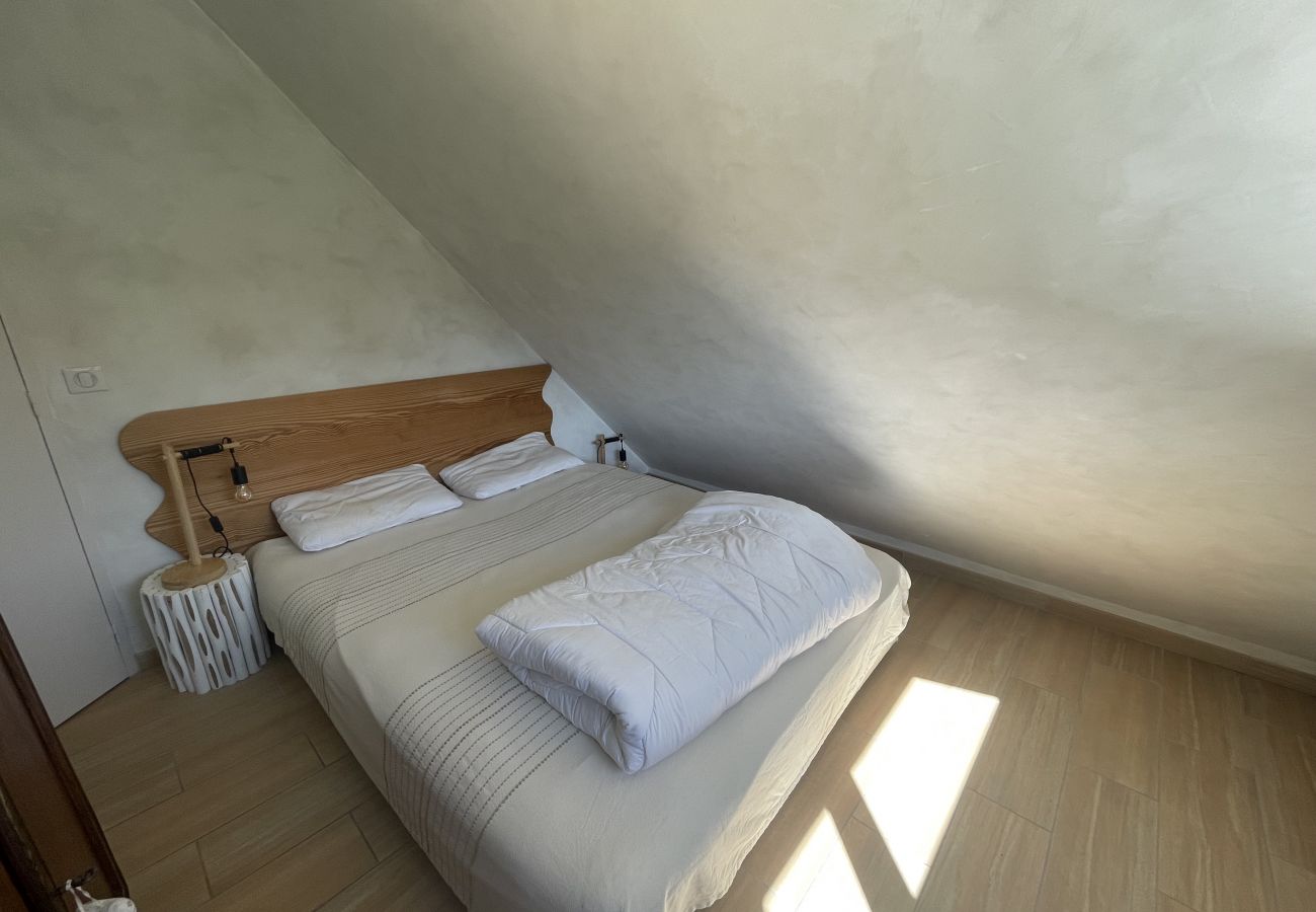En la planta superior, le esperará un rincón de montaña con dos camas individuales (90x190), dos habitaciones con cama de matrimonio (160x190), un baño con bañera y aseos separados.