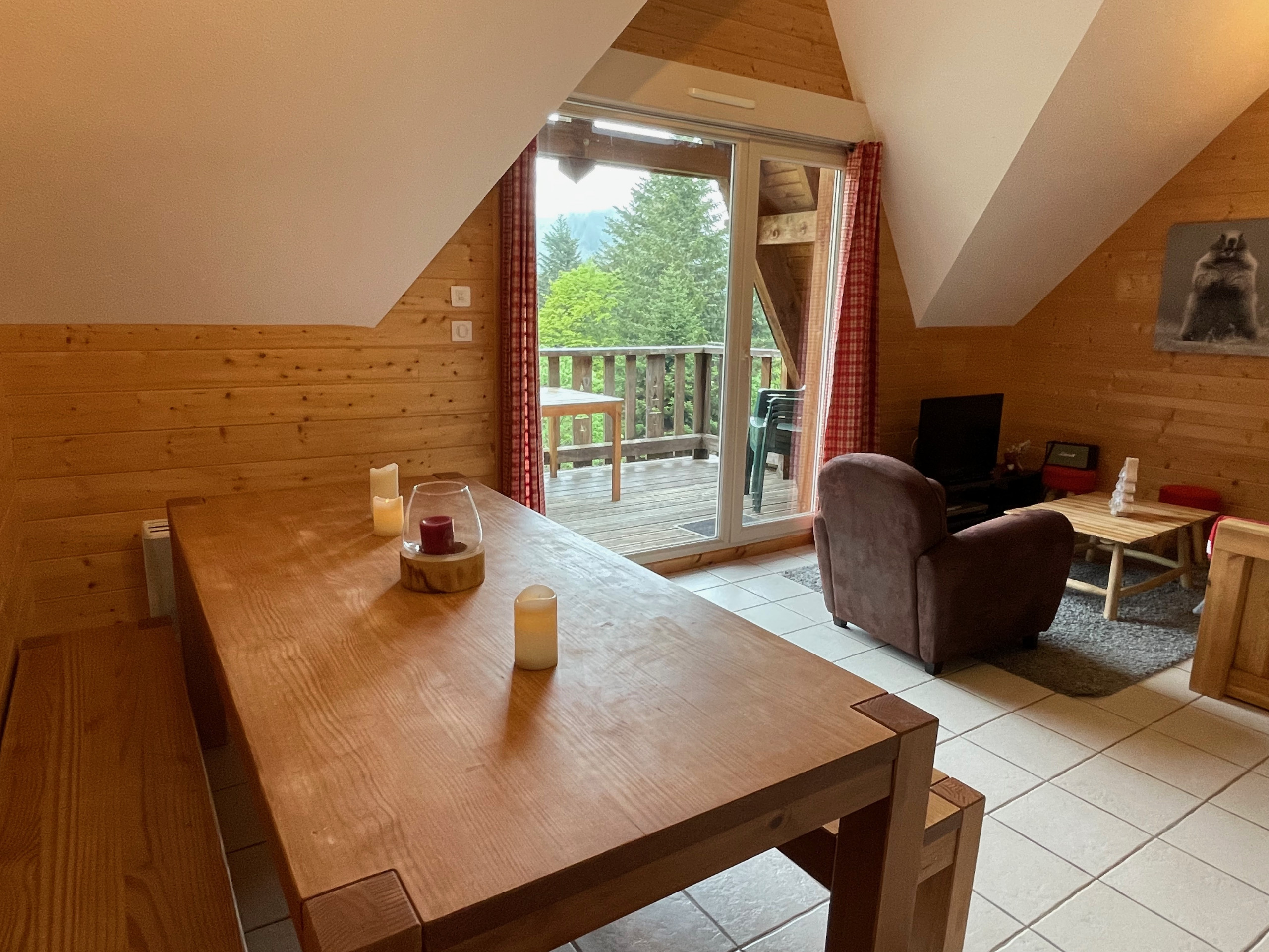 La taille du logement avec ces 2 salles de bain (super lorsque l'on est en famille), l'emplacement à quelques mètres de la piste bleu afin de rejoindre directement la station skis aux pieds, la vue sur la piste et la forêt et le calme.