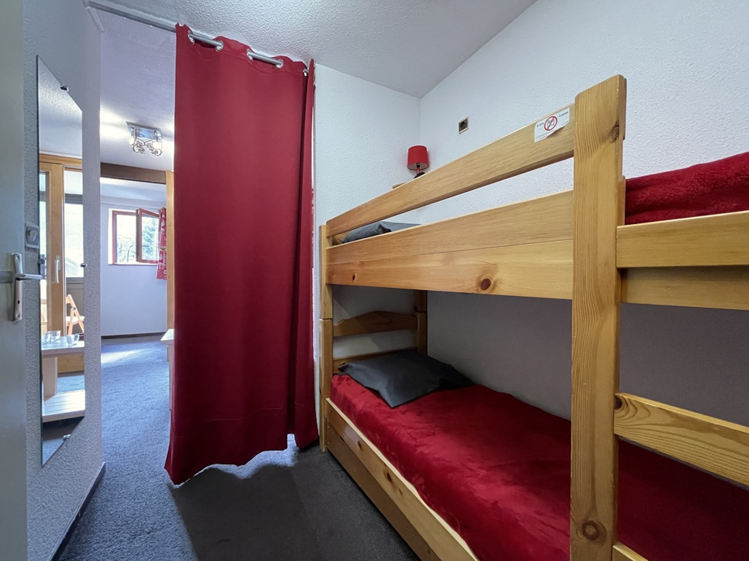 El apartamento cuenta con una distribución práctica que permite alojar cómodamente hasta 5 personas. En la habitación encontrará un sofá BZ convertible en cama para 2 personas (ancho 140 cm), mientras que la sala de estar ofrece un sofá-cama de 1 persona (ancho 80 cm) así como una cama nido abatible (ancho 80 cm) adicional. El rincón de montaña ubicado en la entrada ofrece, por su parte, una litera (ancho 80 cm) y una cama individual (ancho 80 cm) que está aislada del resto del apartamento por una cortina para mayor privacidad.