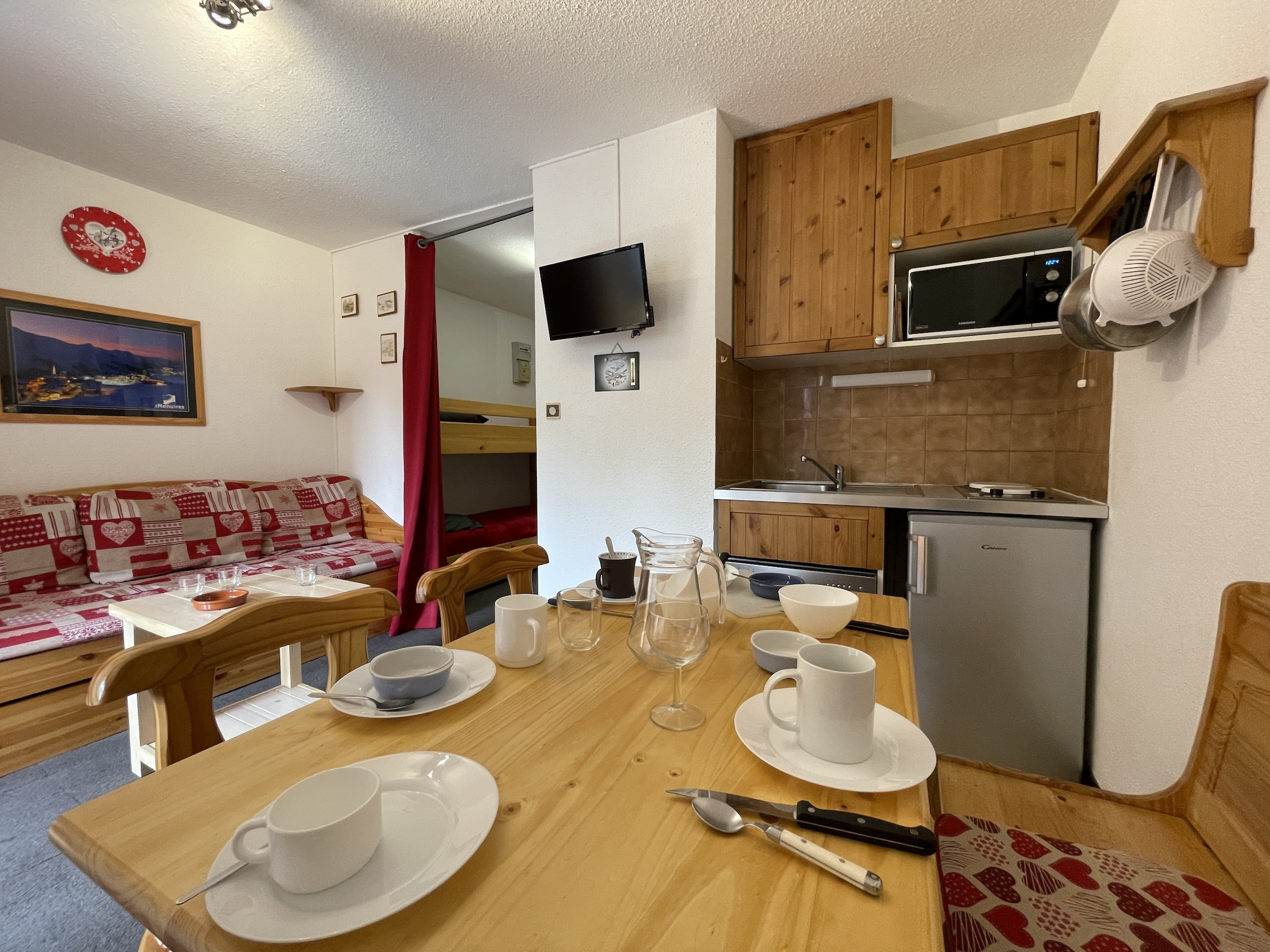 Descubra este encantador apartamento de 2 habitaciones + rincón de montaña de 25 m2 ubicado en el corazón de Les Menuires, barrio de Bruyères en la residencia Ski soleil 1, con ascensor. El barrio es ideal para familias y grupos de amigos apasionados de los deportes de invierno. Ubicado en un entorno montañoso idílico, esta vivienda situada en la primera planta y orientada al oeste ofrece una luminosidad excepcional y una atmósfera acogedora.