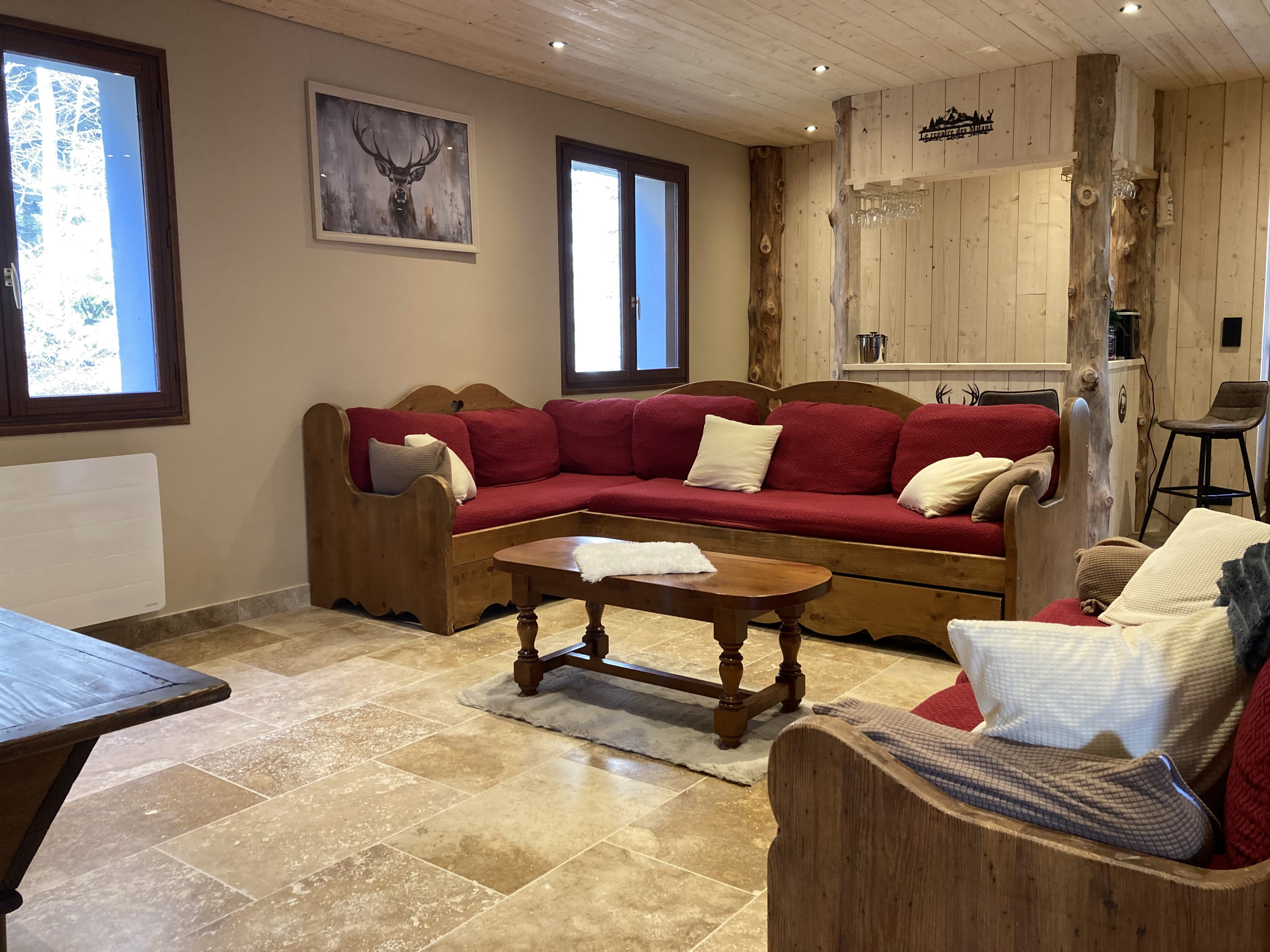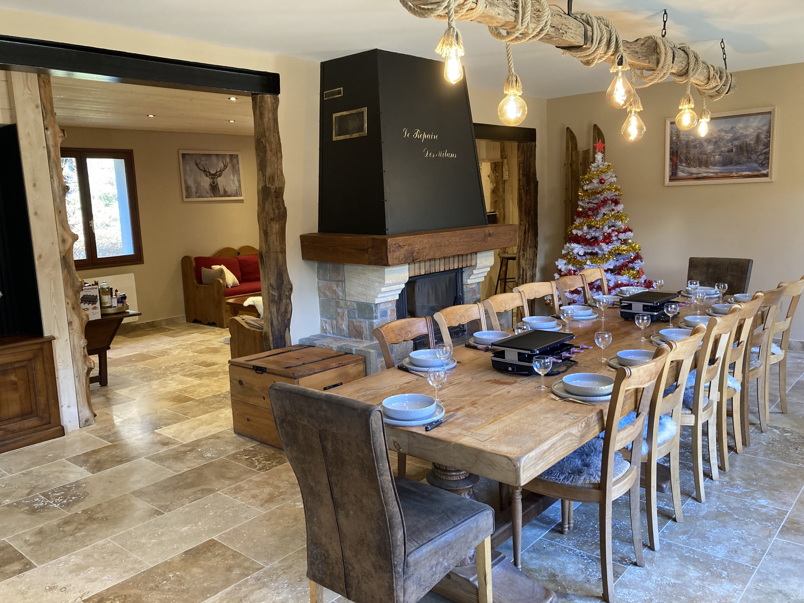 El segundo nivel habitable está compuesto por un magnífico y muy acogedor comedor abierto a la cocina equipada (2 refrigeradores de los cuales uno tiene congelador, cafetera SENSEO y NESPRESSO, horno, microondas, lavavajillas, placa de inducción, aparato para raclette y fondue, tostadora, hervidor,...). Una chimenea funcional con leña y material de encendido, aporta un toque especial a esta habitación.