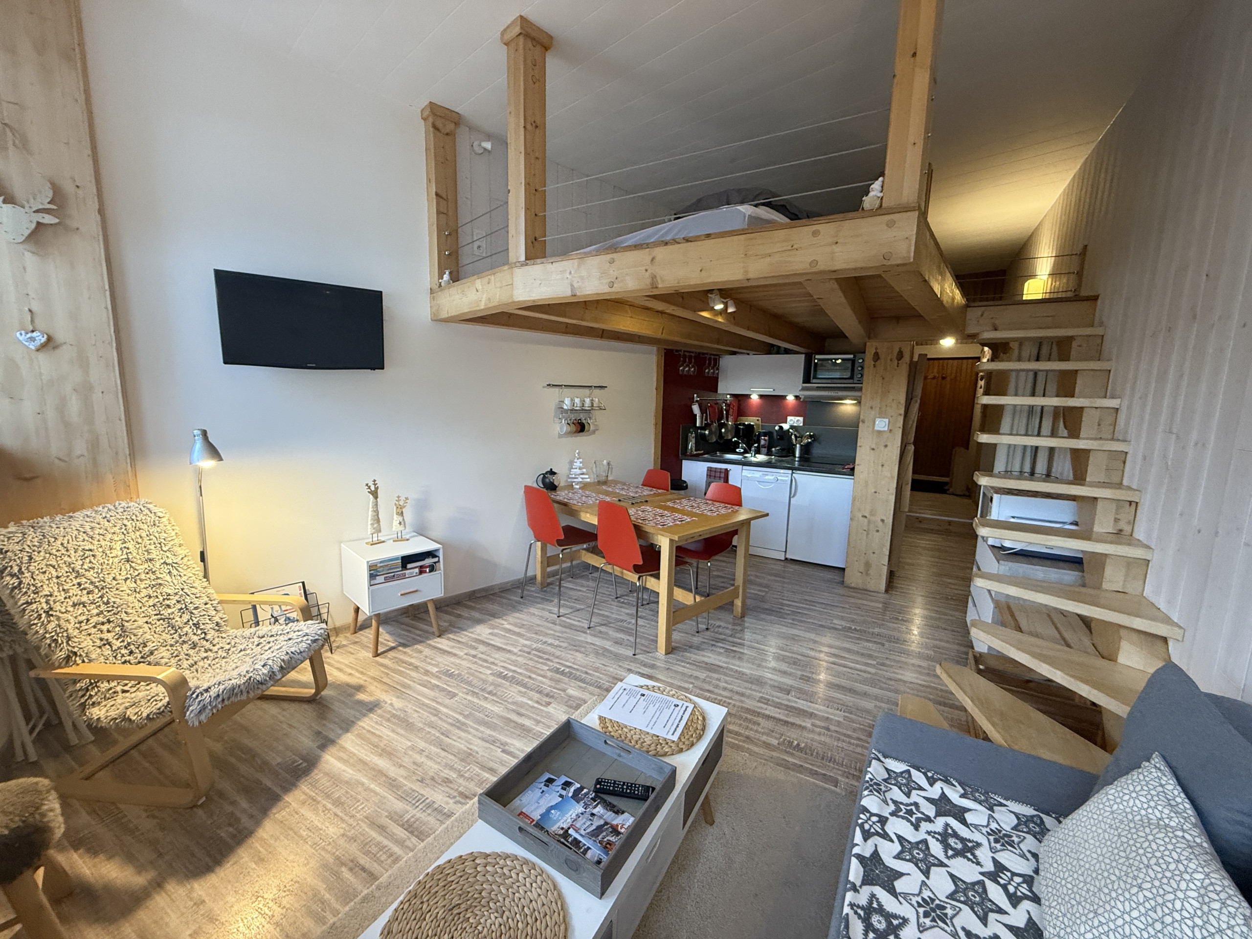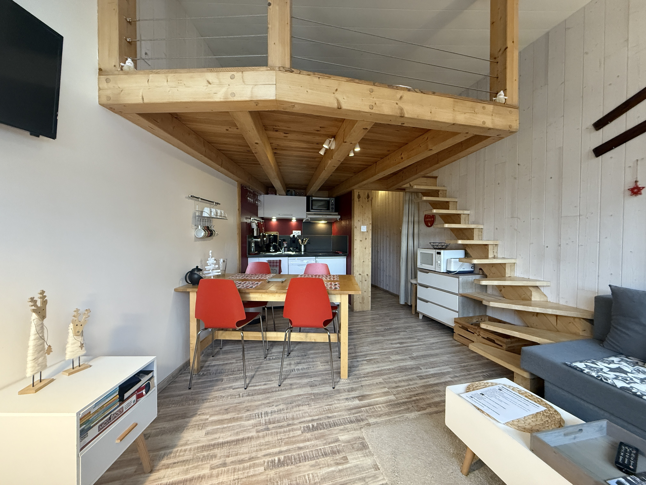 Encantador estudio dúplex previsto para 4 personas ubicado en el corazón de la residencia Saporta, frente a la pradera de Sagnes, a pie de pistas.