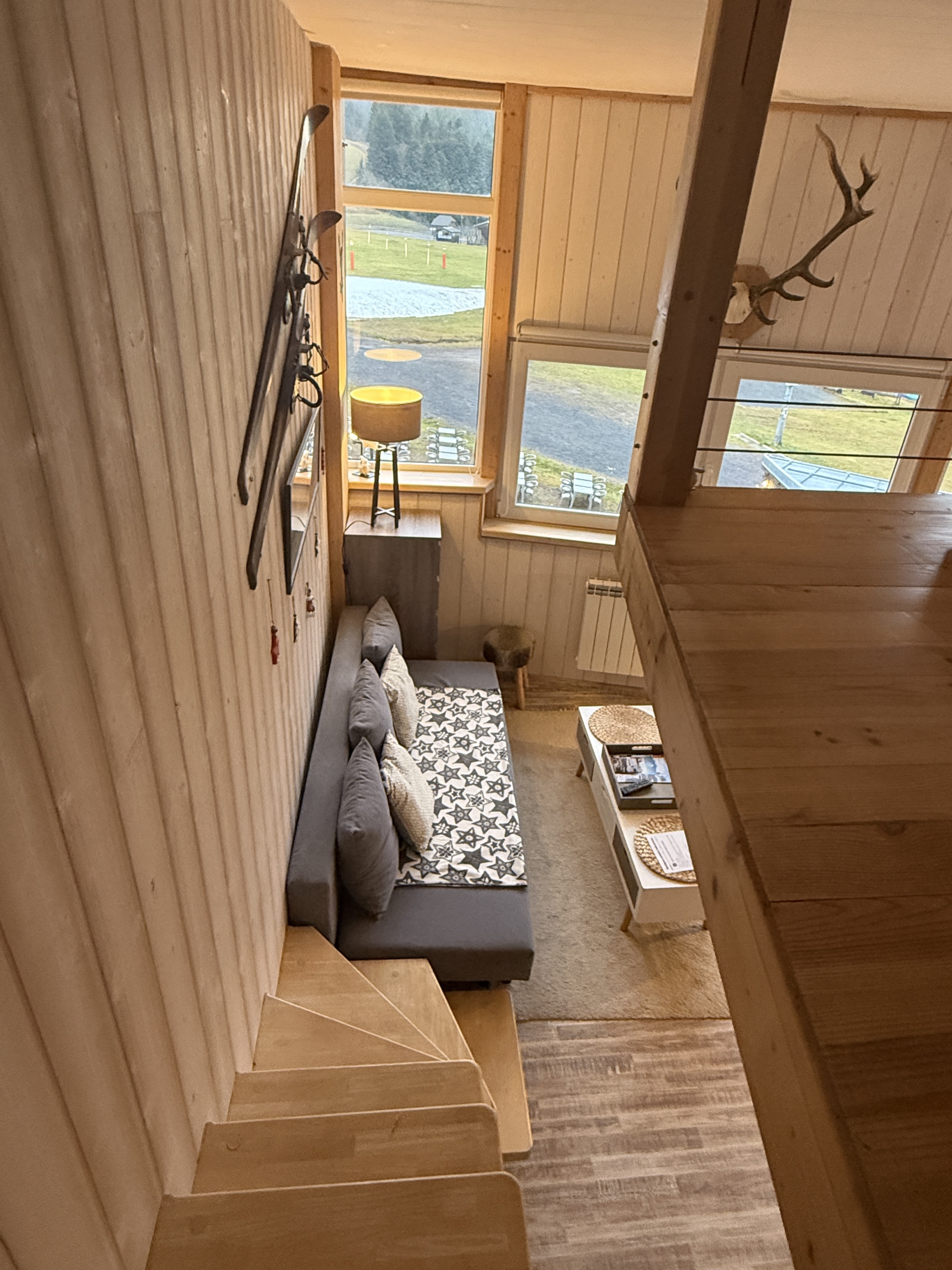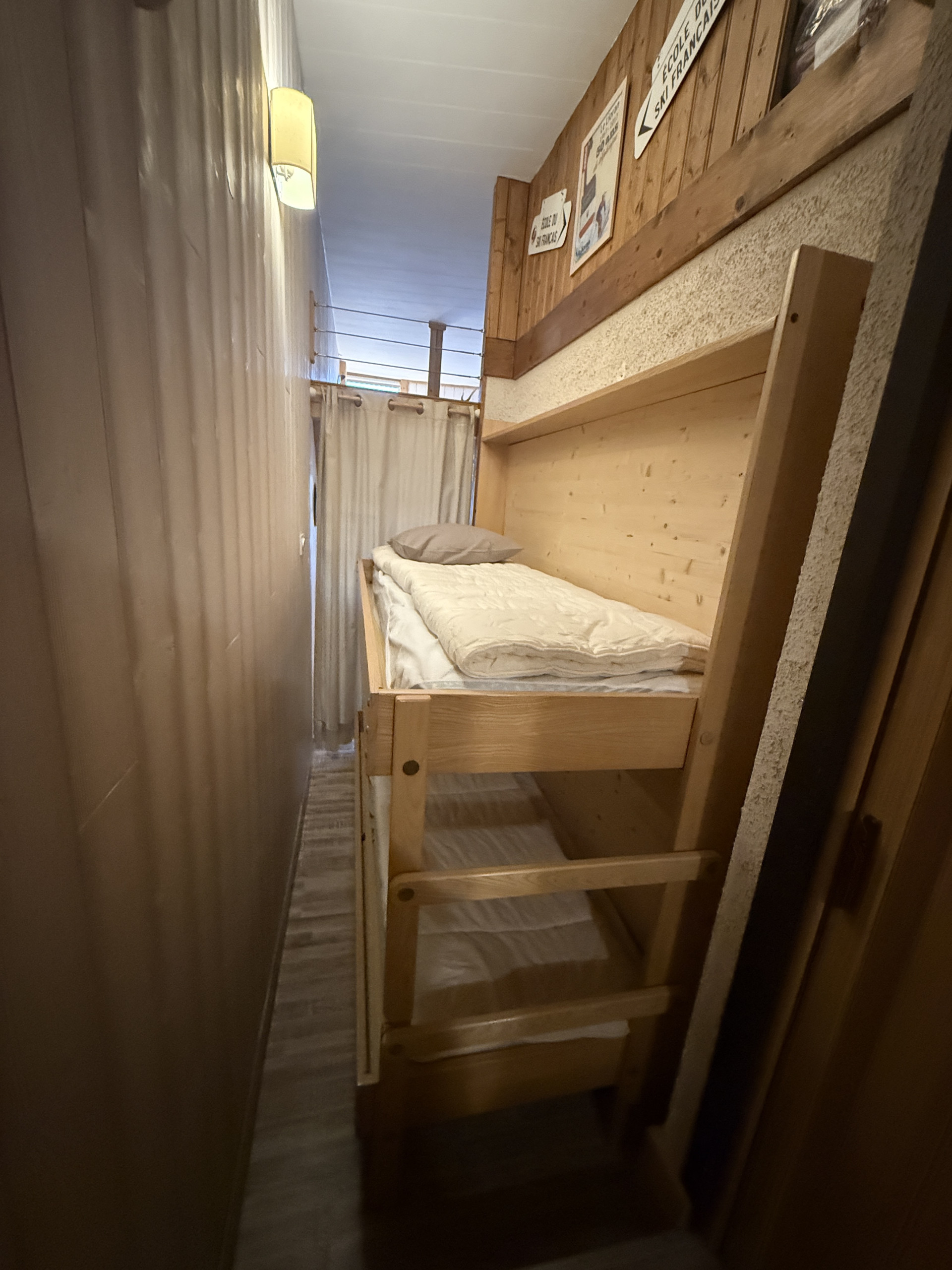 En el nivel de la entreplanta se encuentra la zona de noche con una cama doble de 140x190. La litera con camas de 70x190 está ubicada en el pasillo de la entrada del alojamiento y son plegables. Este último también le da acceso al cuarto de baño que consta de una ducha y un WC. Tendrá a su disposición un secador de pelo. No hay lavadora en este alojamiento.