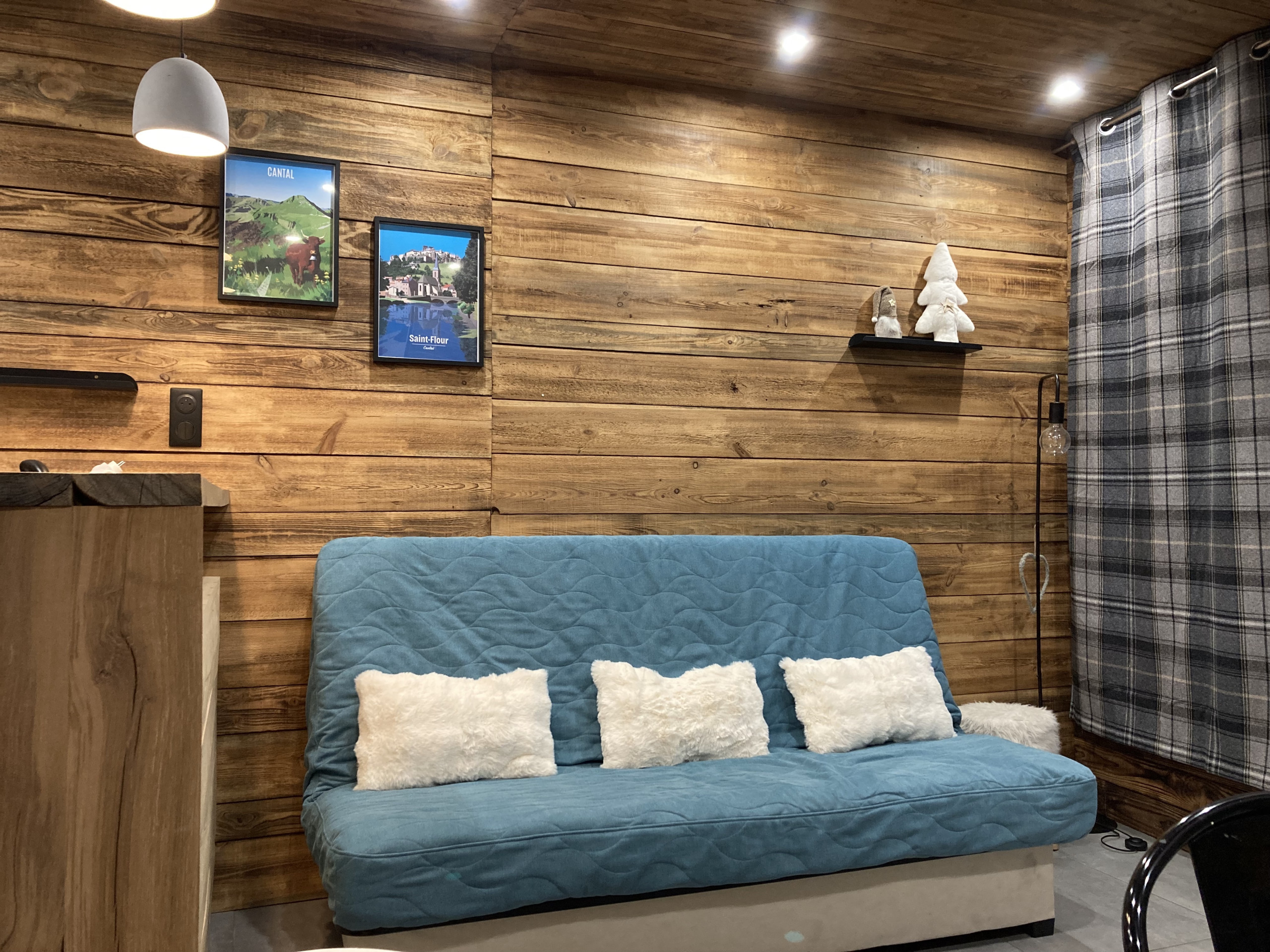 El salón está abierto al rincón de la cocina y le ofrecerá una vista de las montañas del pico del águila y del pezón de Venus (lado parking). Tendrá a su disposición un sofá cama tipo clic-clac de 140x190.