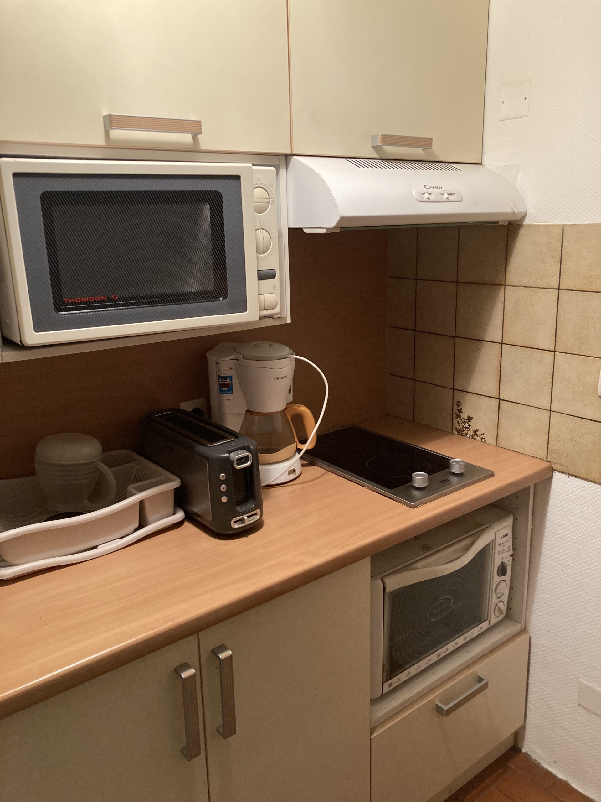 Este alojamiento para 4 personas le ofrecerá una cocina equipada con frigorífico, placa eléctrica, cafetera de filtro tradicional, tostadora, microondas, horno eléctrico pequeño y televisión.