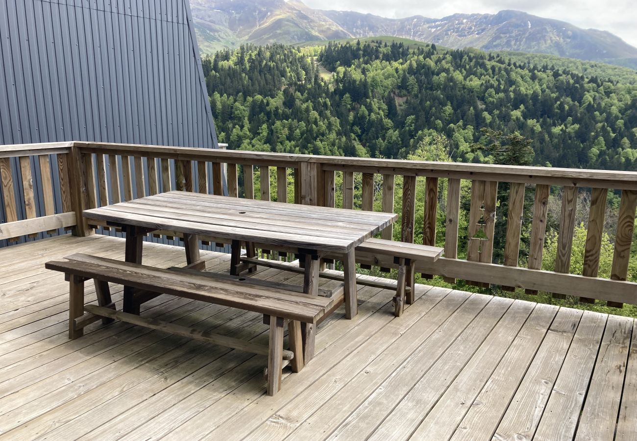 Bel appartement refait à neuf de 80 m2 situé dans la résidence Altitude 1500 à Font de Cère, à 100 mètres des pistes de ski. Le logement est composé d'un séjour/cuisine, celui-ci donnant sur une terrasse plein sud équipée de son mobilier de jardin avec une vue imprenable sur l'Arpon du Diable! L'équipement de la cuisine mettra à votre disposition four, four micro-ondes, réfrigérateur/congélateur, lave vaisselle, appareil à raclette, cafetière filtre, cafetière senseo...vous pourrez prendre vos repas en toute convivialité autour d'une grande table à manger. Un téléviseur dans le salon est présent.