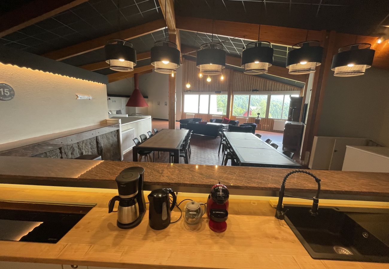 Exceptionnel loft situé dans la résidence Altitude 1500. A quelques mètres de pistes de ski et de chemins de randonnées, ce superbe logement est idéal pour accueillir de grands groupes pour des séminaires ou grands évènements et familles jusque 14 personnes. Notre plus grand hébergement sur la station du Lioran qui permettra à chacun de trouver sa place grâce à tous ses espaces vastes et confortables.