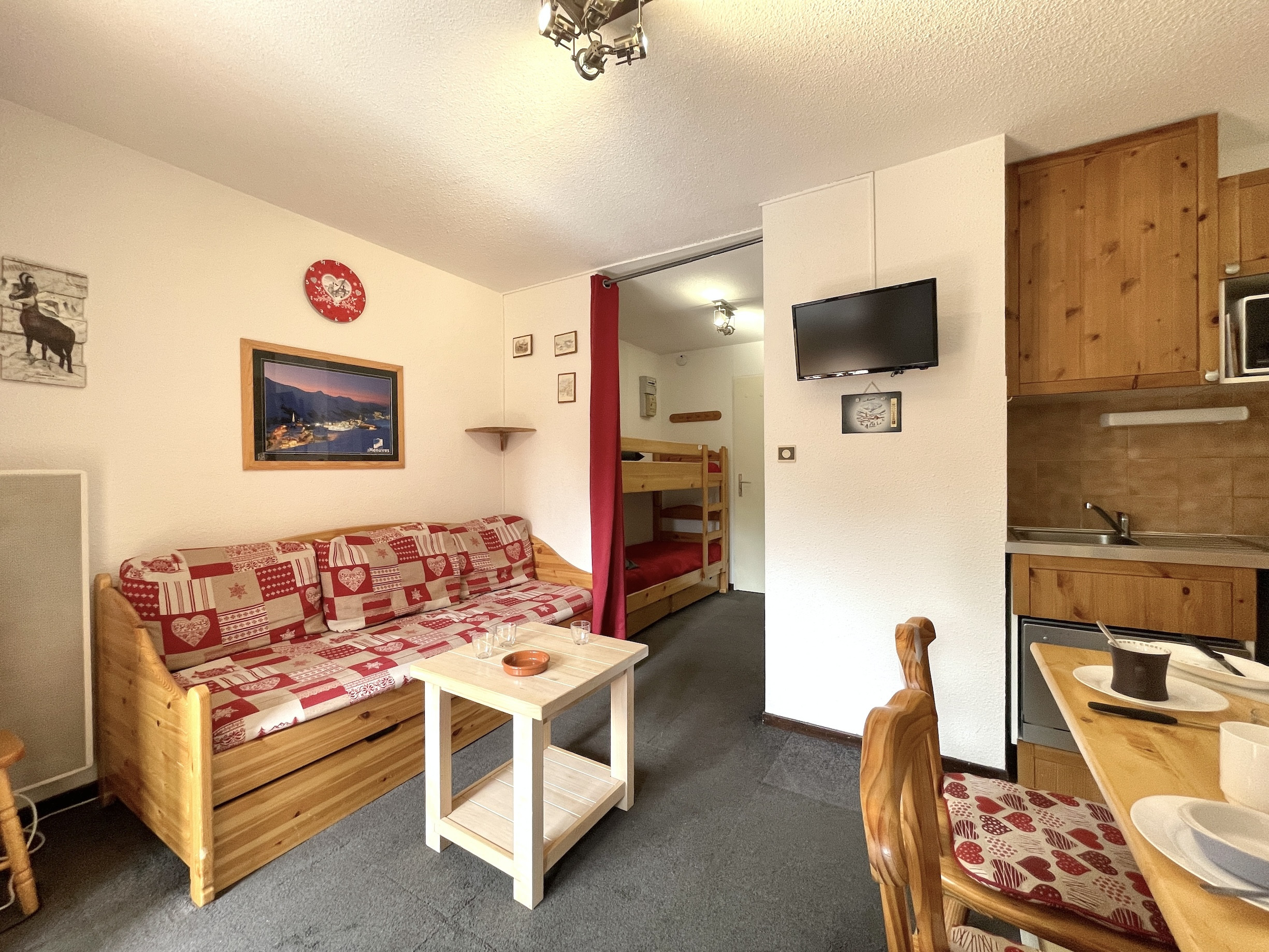 Découvrez ce charmant appartement 2 pièces + coin montagne 25 m2 situé au cœur des Menuires, quartier des Bruyères dans la résidence Ski soleil 1, avec ascenseur. Le quartier est idéal pour les familles et les groupes d'amis passionnés de sports d'hiver. Niché dans un environnement montagnard idyllique, ce logement situé au 1er étage et exposé plein ouest offre une luminosité exceptionnelle et une atmosphère chaleureuse.