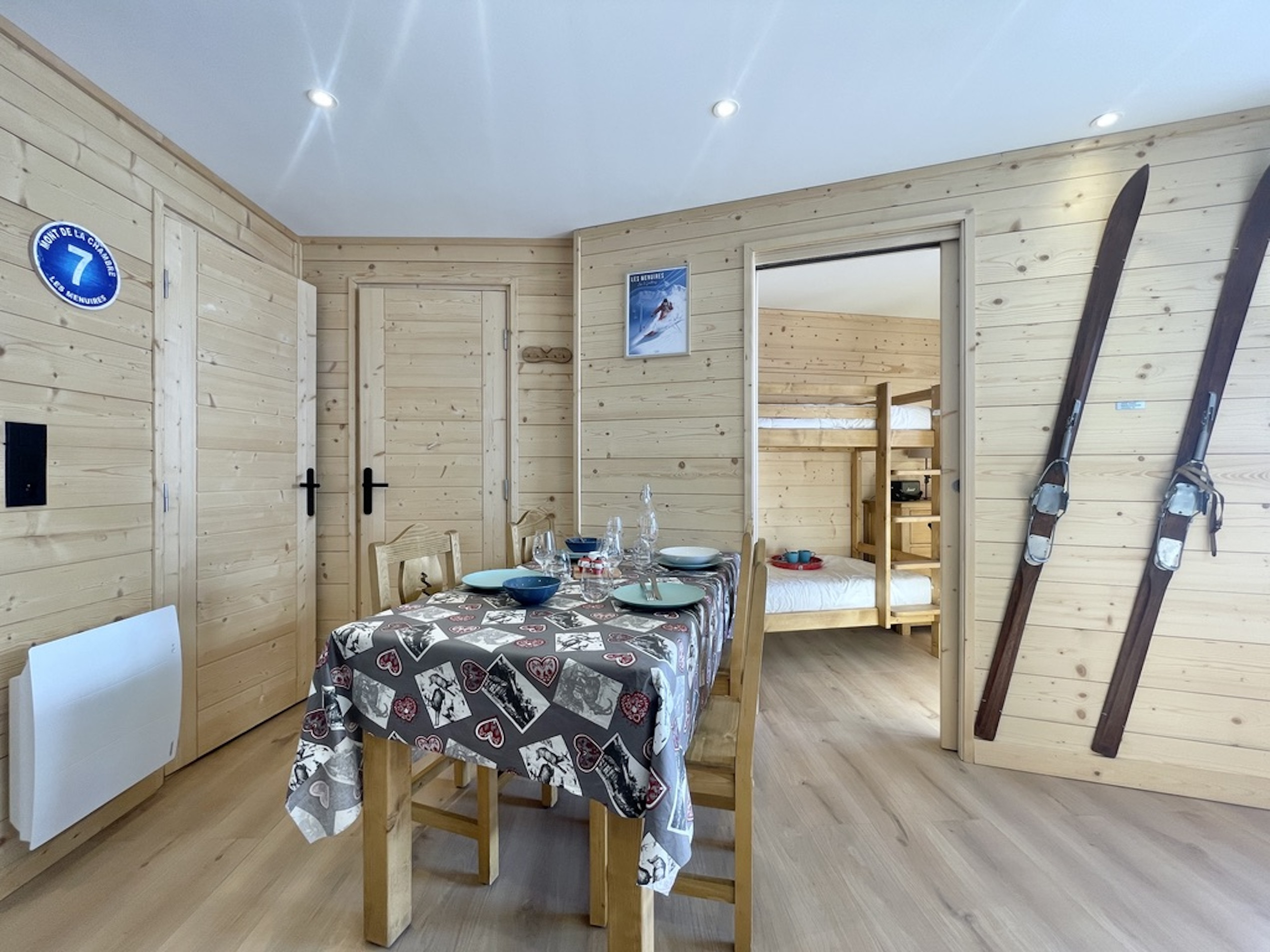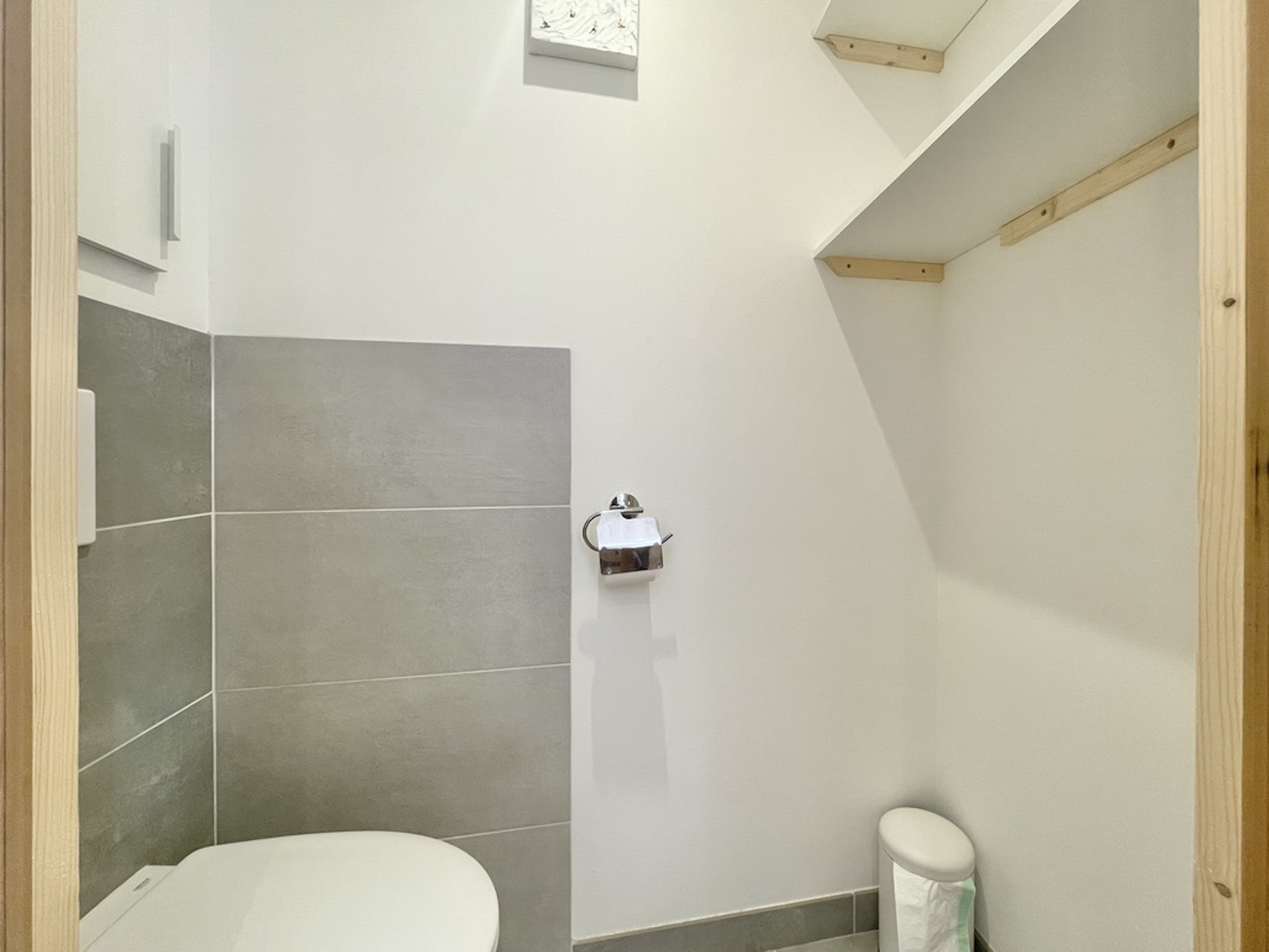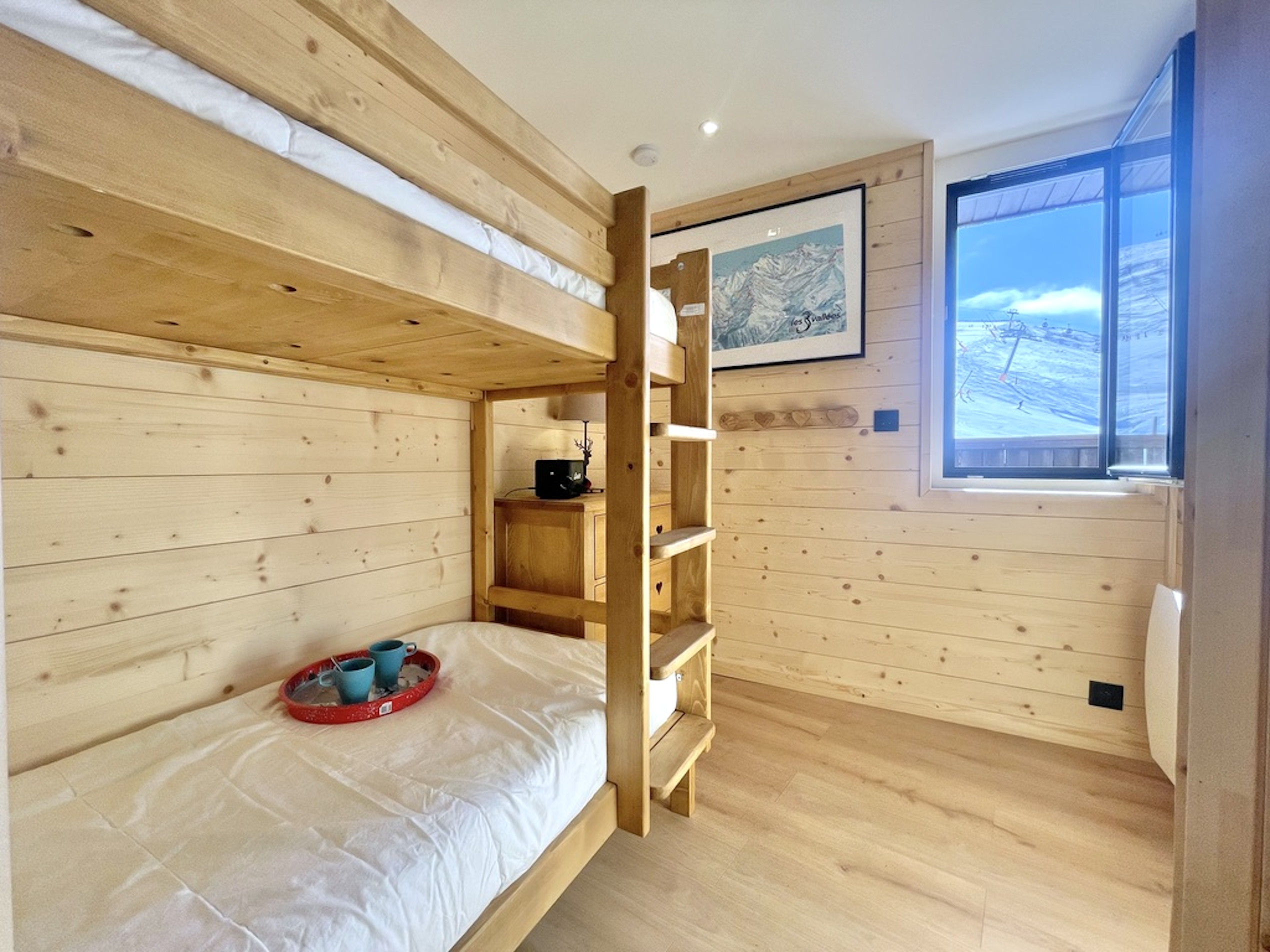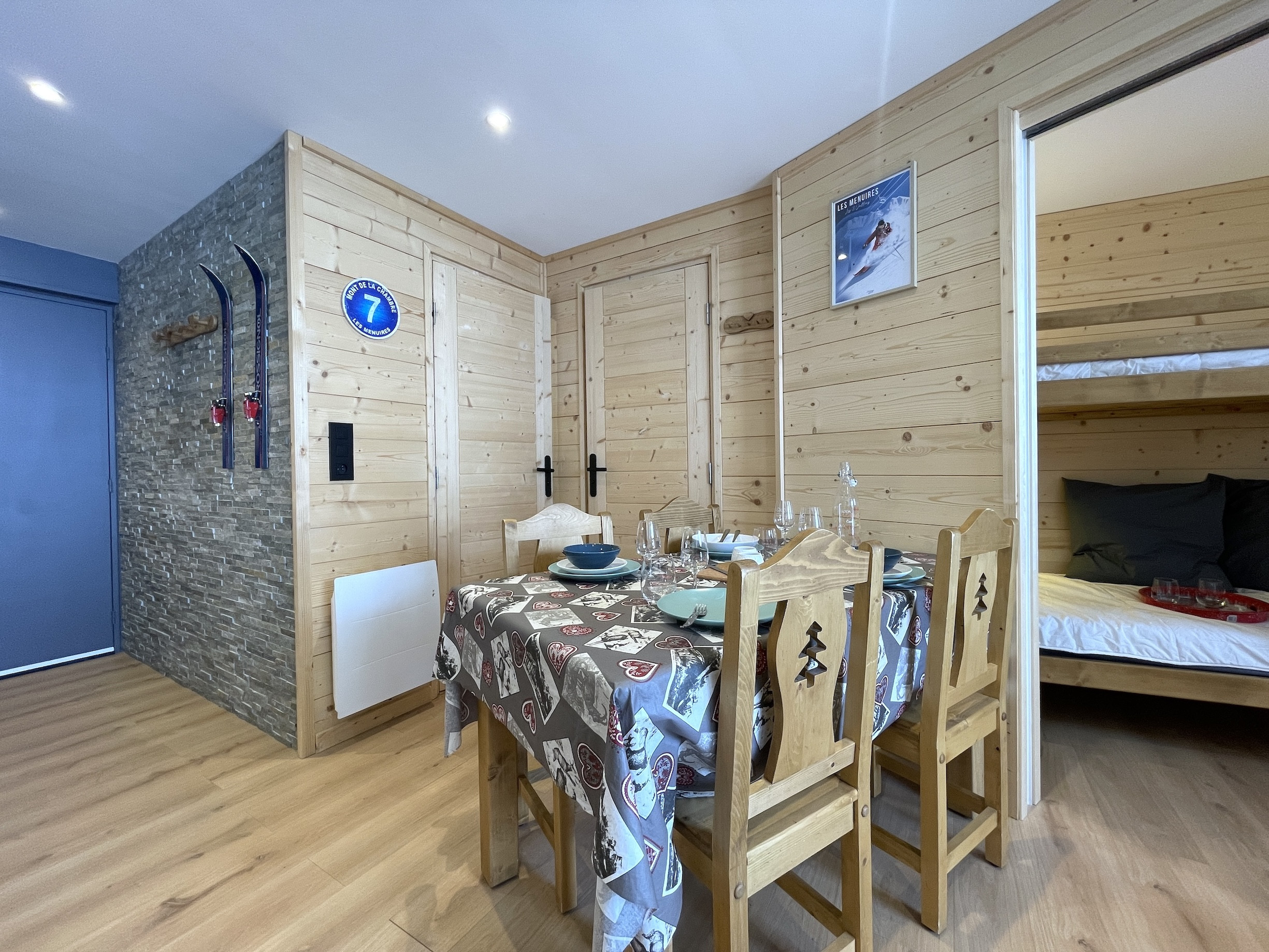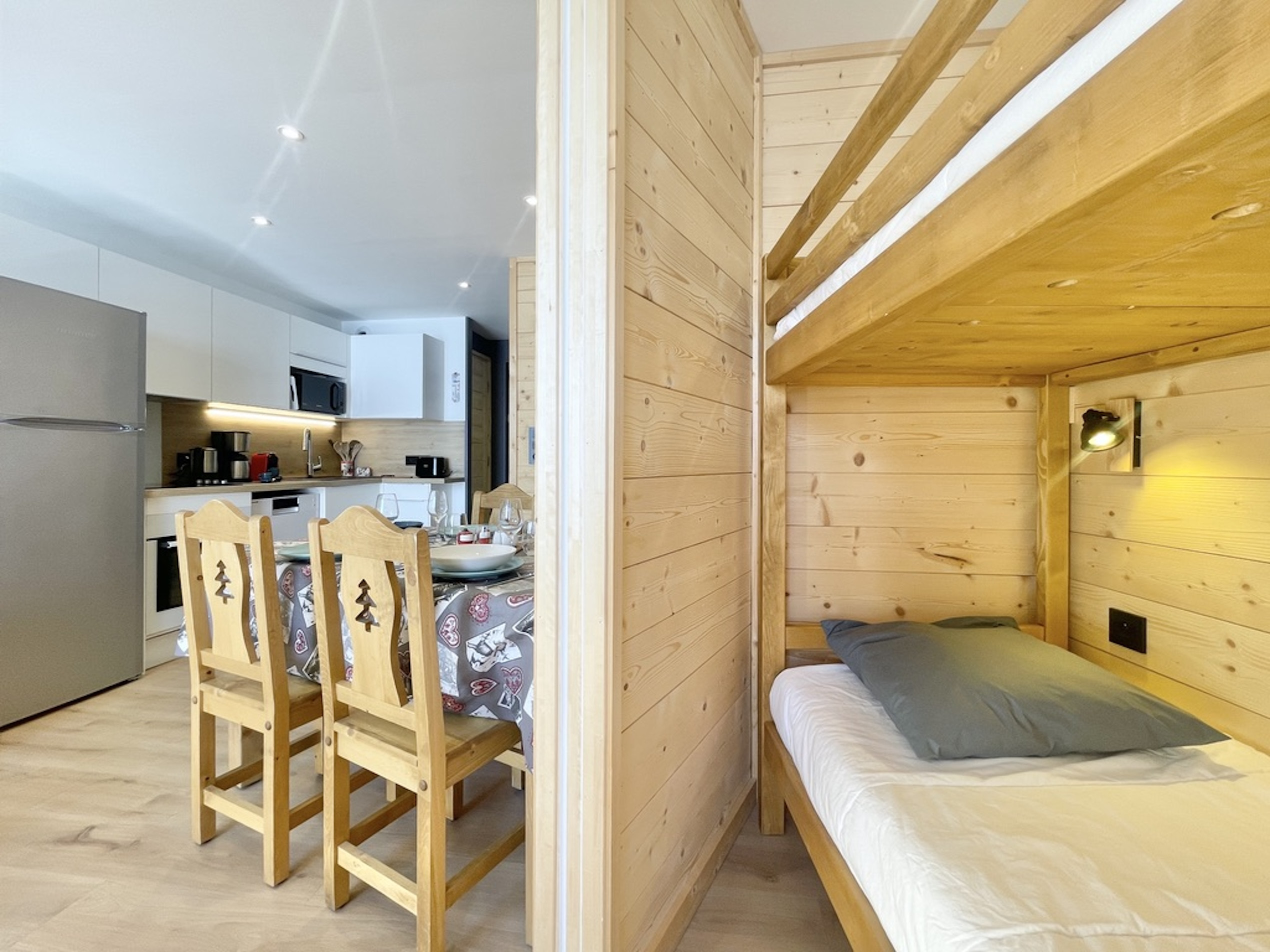 Idéal pour une famille avec deux enfants ou des amateurs de ski, cet espace de 28,5 m² a été optimisé pour être à la fois pratique et chaleureux. La décoration actuelle, mêlant bois et matériaux soignés, crée une ambiance agréable pour un séjour à la montagne. Tout est fonctionnel et bien pensé pour profiter pleinement de vos vacances.