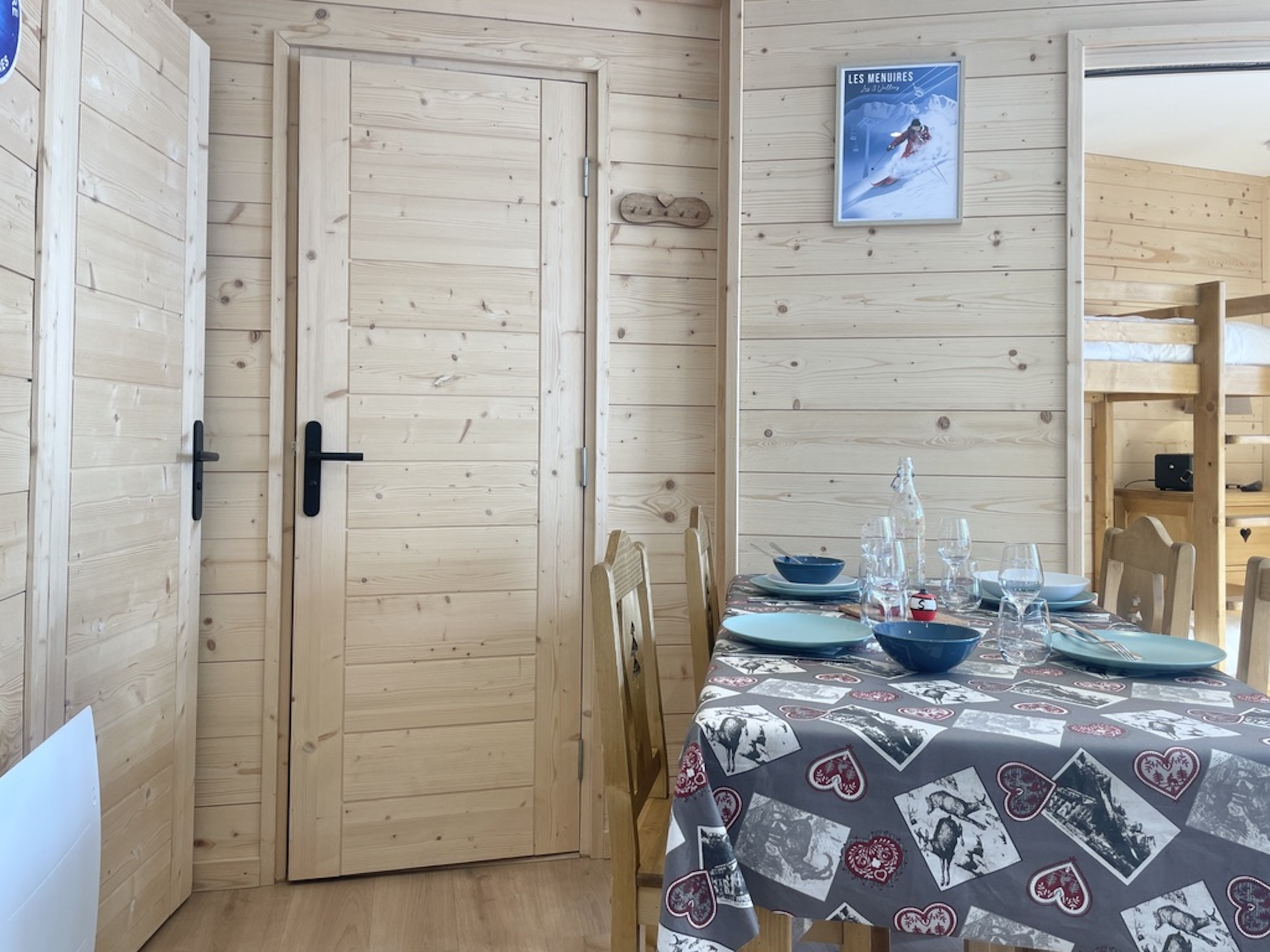La pièce de vie est conviviale et bien agencée, avec une TV connectée (100 cm), Wi-Fi fibre, un coin repas et un canapé gigogne modulable (2 lits de 80 x 190 cm pouvant être rapprochés pour former un couchage double en 160 x 190 cm).