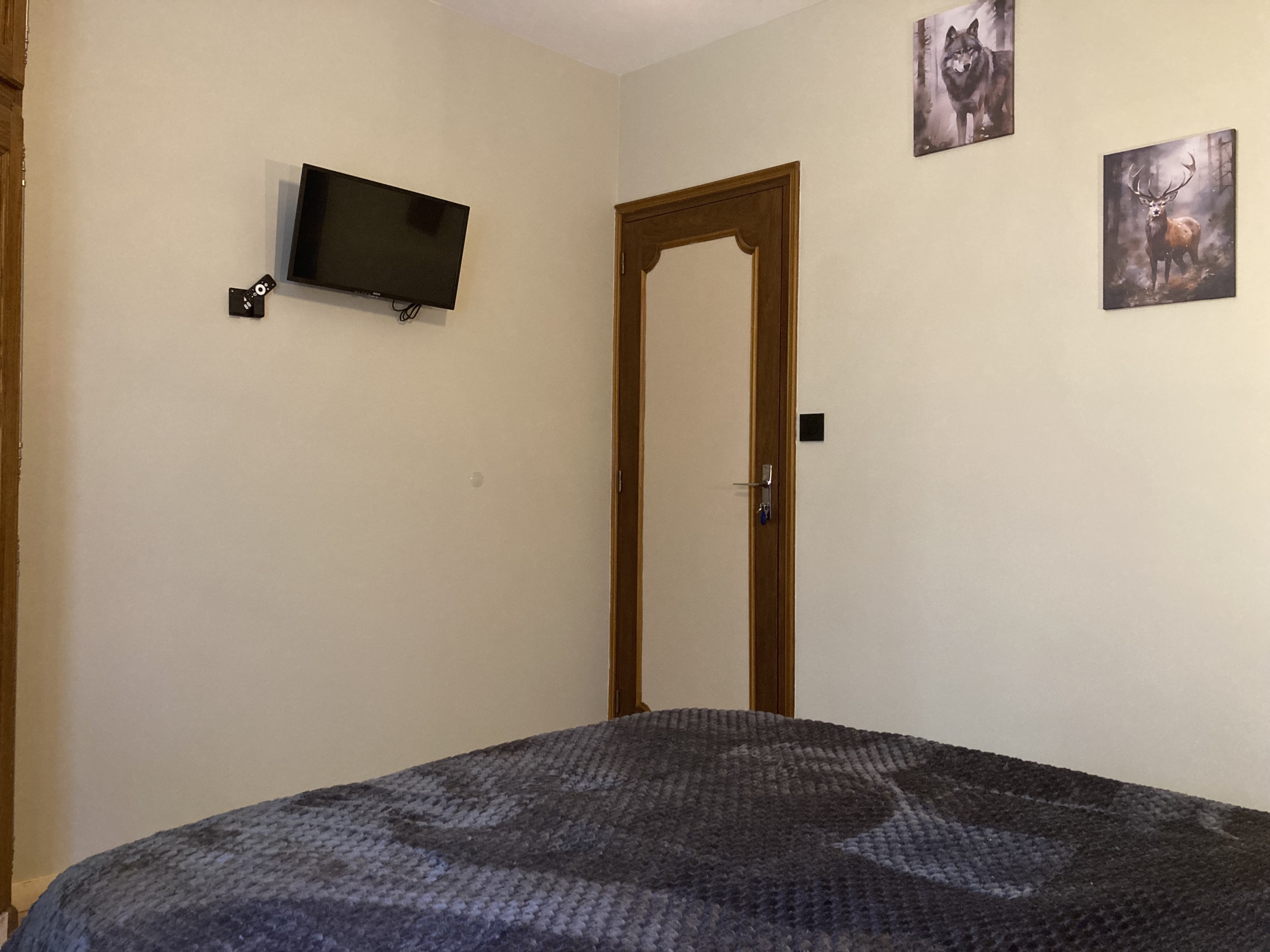 Chacune de ces chambres sont équipées avec une télévision et des étagères de rangements/patères.