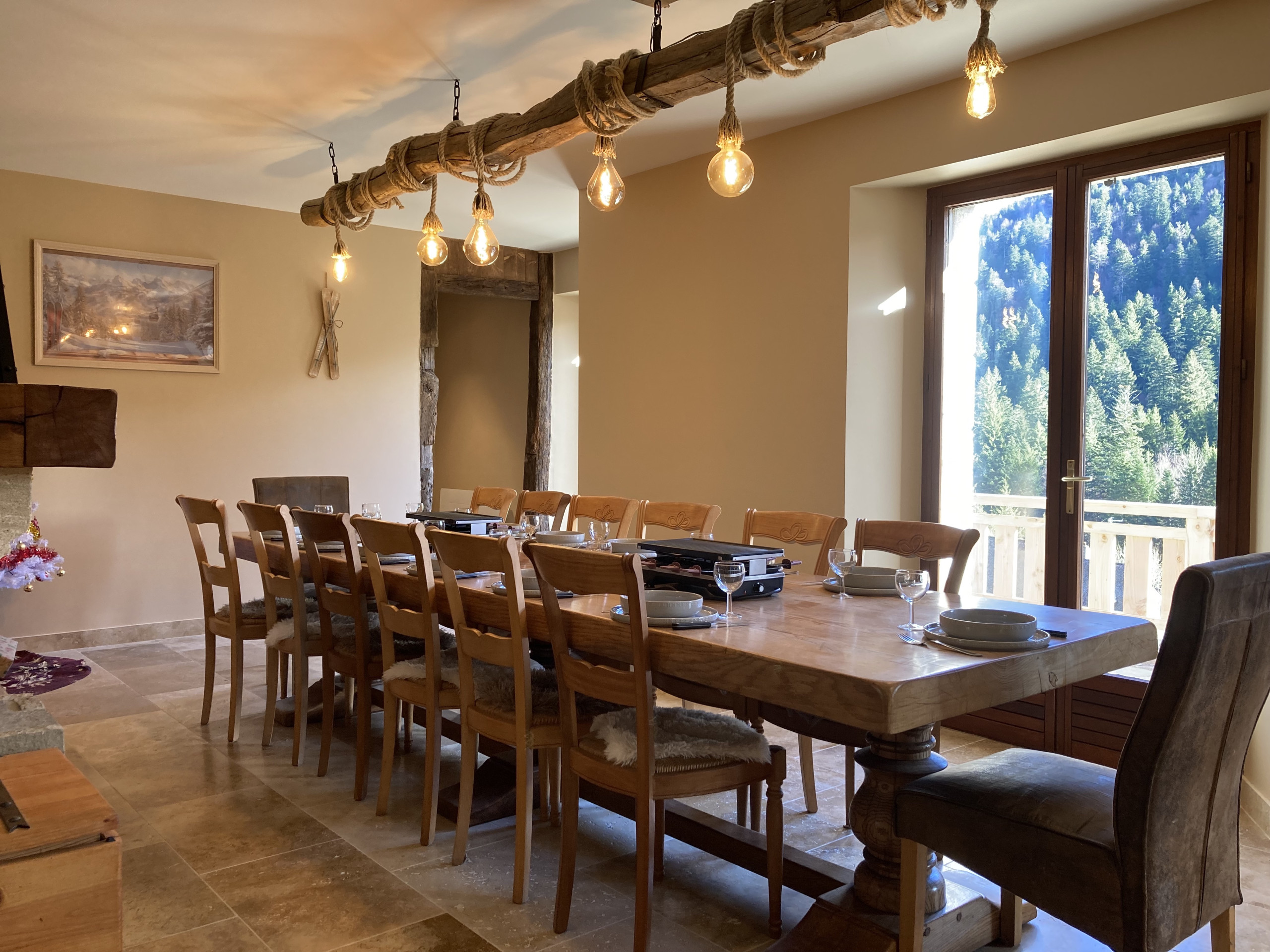 Le second niveau habitable est composé dune magnifique et très accueillante salle à manger ouverte sur la cuisine équipée (2 réfrigérateurs dont un qui a un congélateur, cafetière SENSEO et NESPRESSO, four, four micro-ondes, lave vaisselles, plaque de cuisson induction, appareil à raclette et à fondue, grille pain, bouilloire,...). Une cheminée fonctionelle avec bois et matériel d'allumage, vient apporter du cachet à cette pièce.