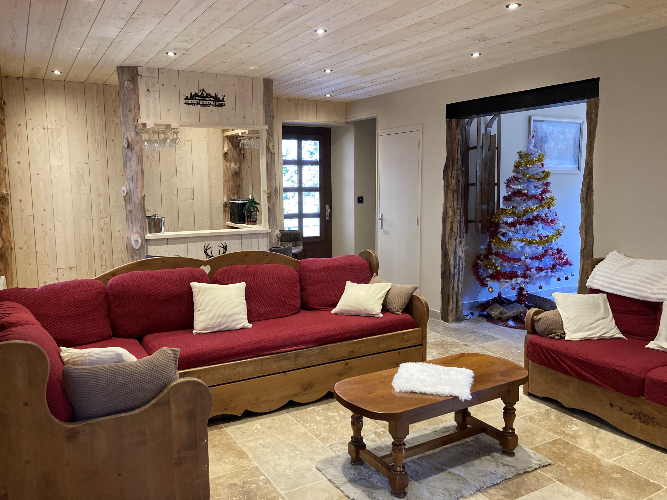 Un espace salon ensuite, vous permettra de vous détendre avec ses canapés, son téléviseur maxi format et son coin bar.