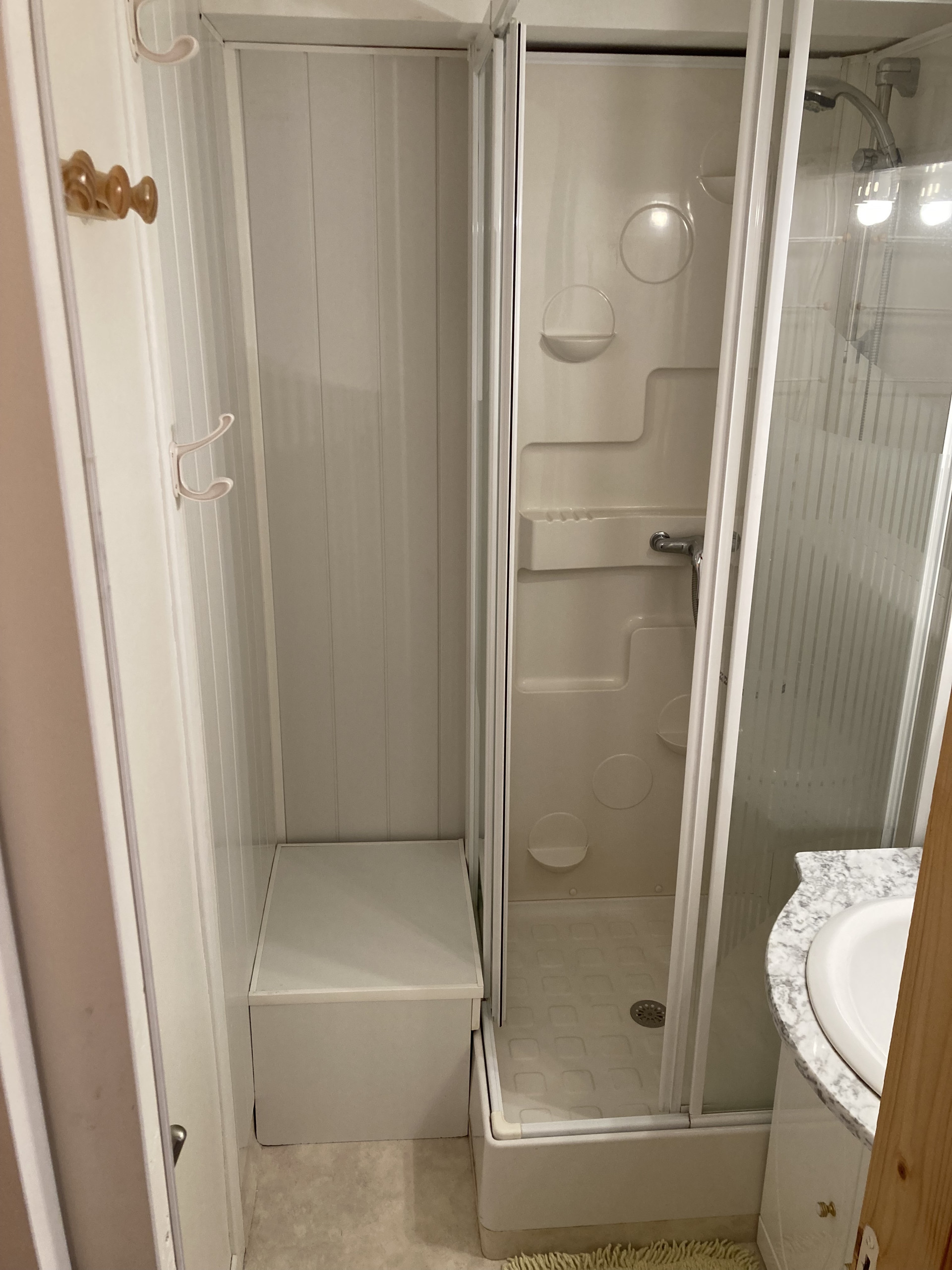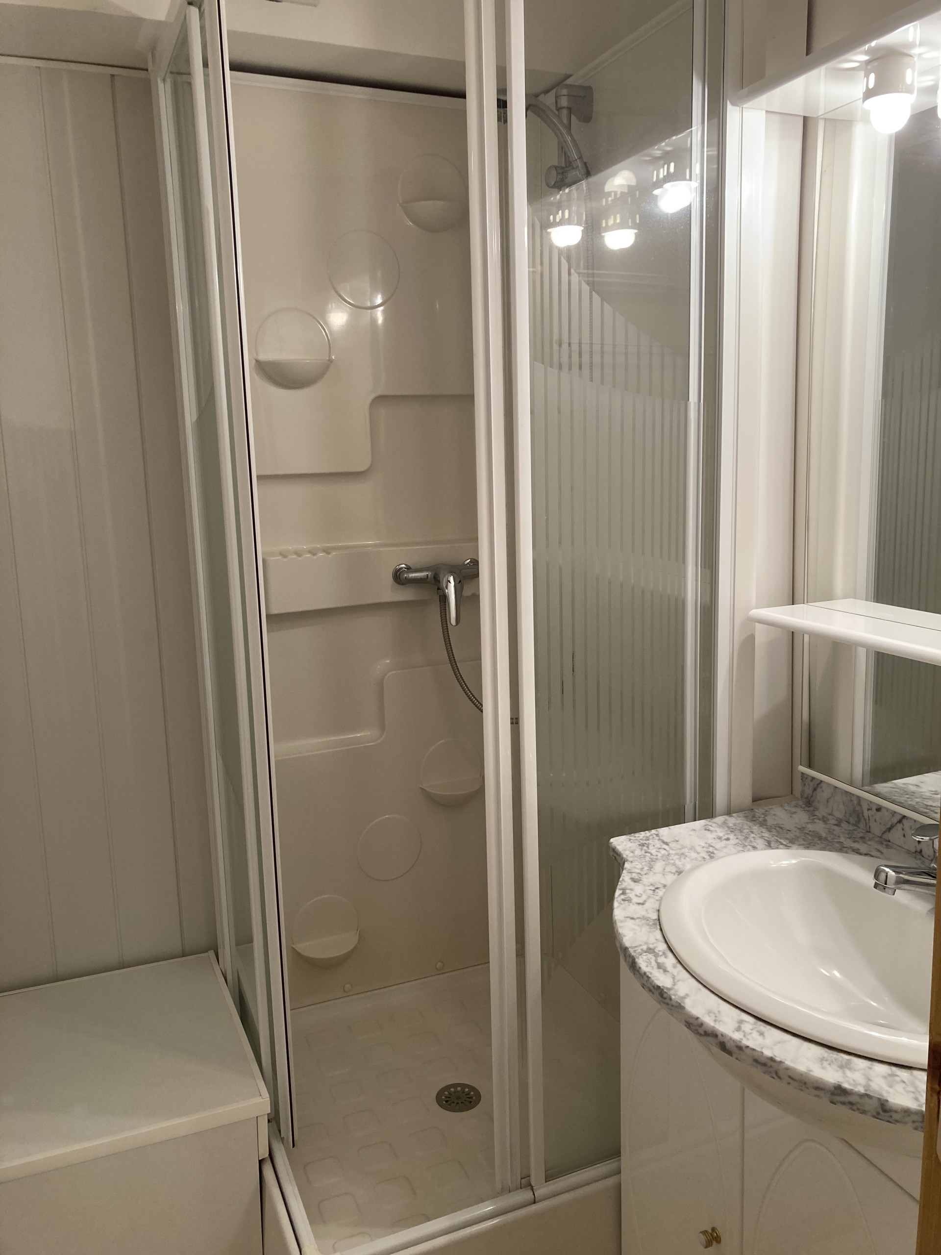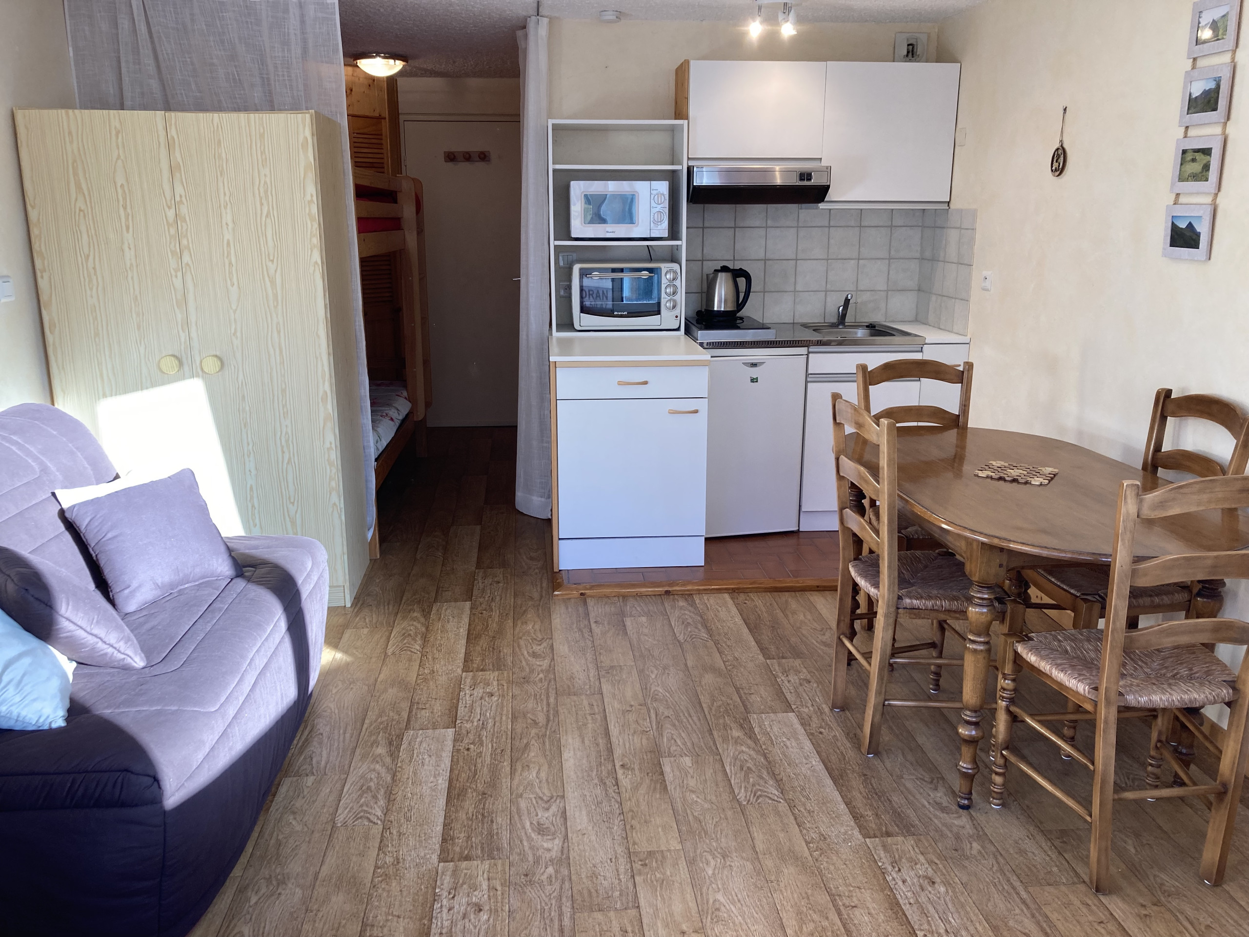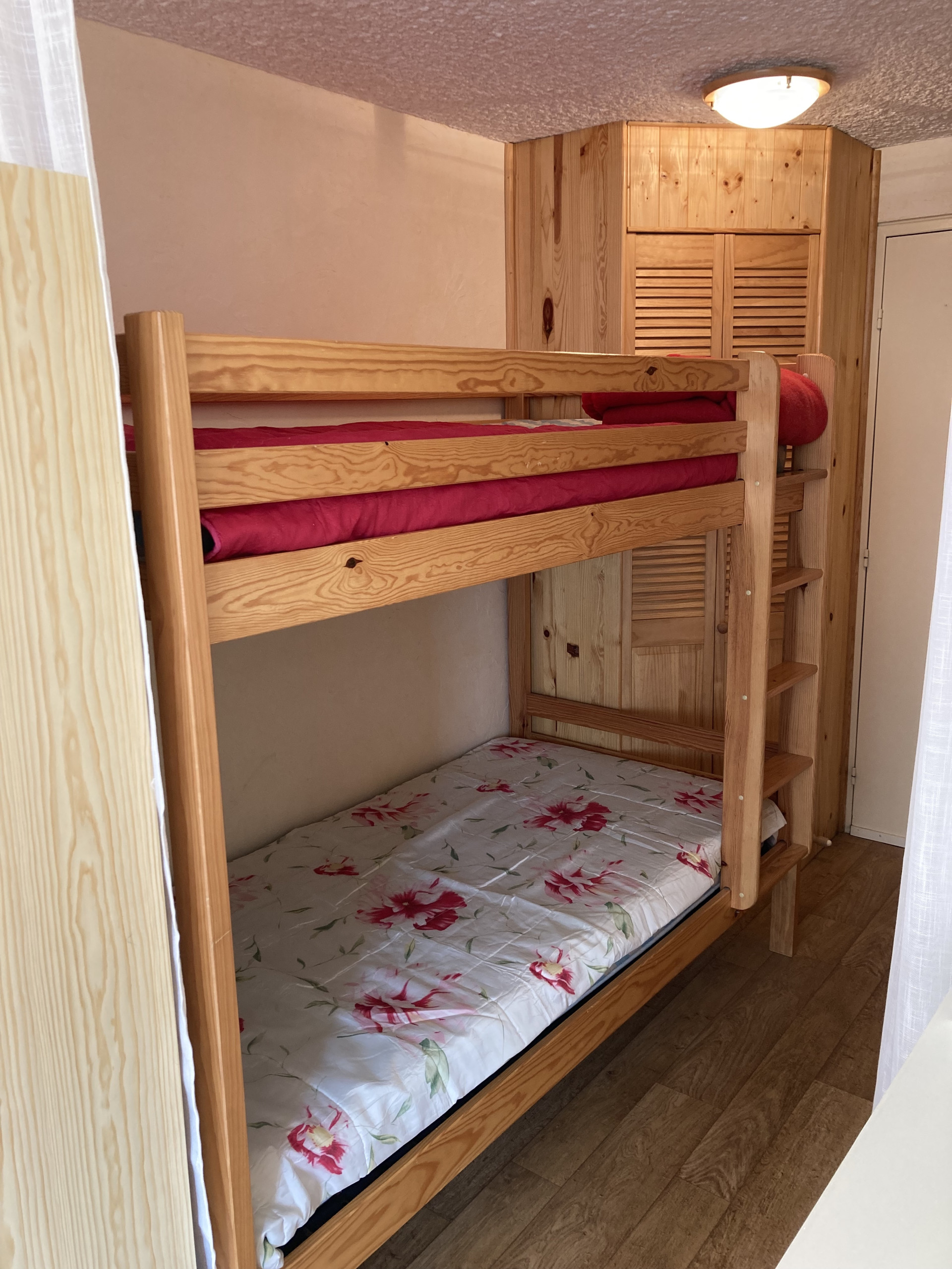 Vous trouverez dans l'entrée un placard de rangement ainsi que le coin montagne avec un lit superposé en 80x180, un wc séparé et une salle d'eau avec douche.