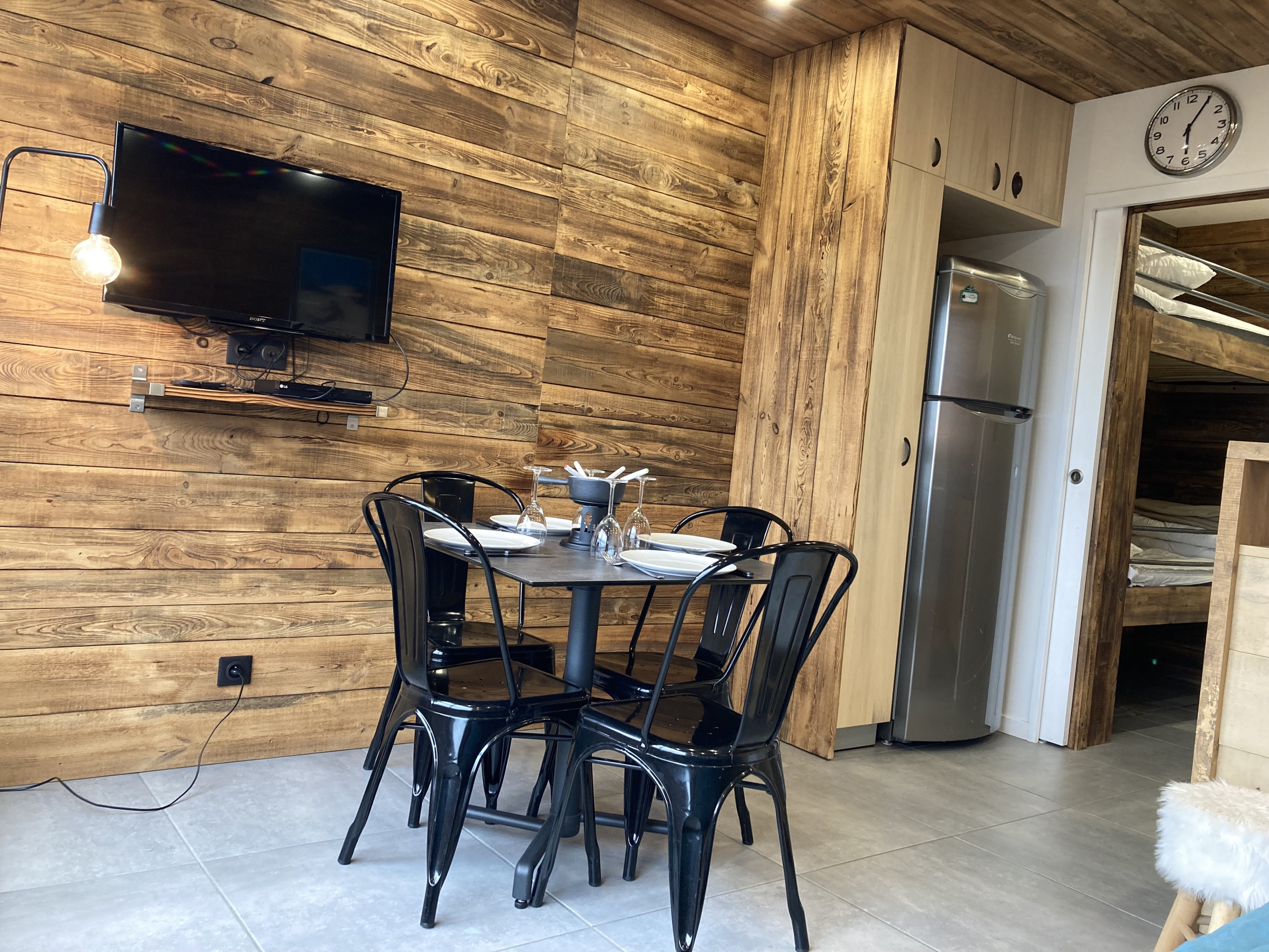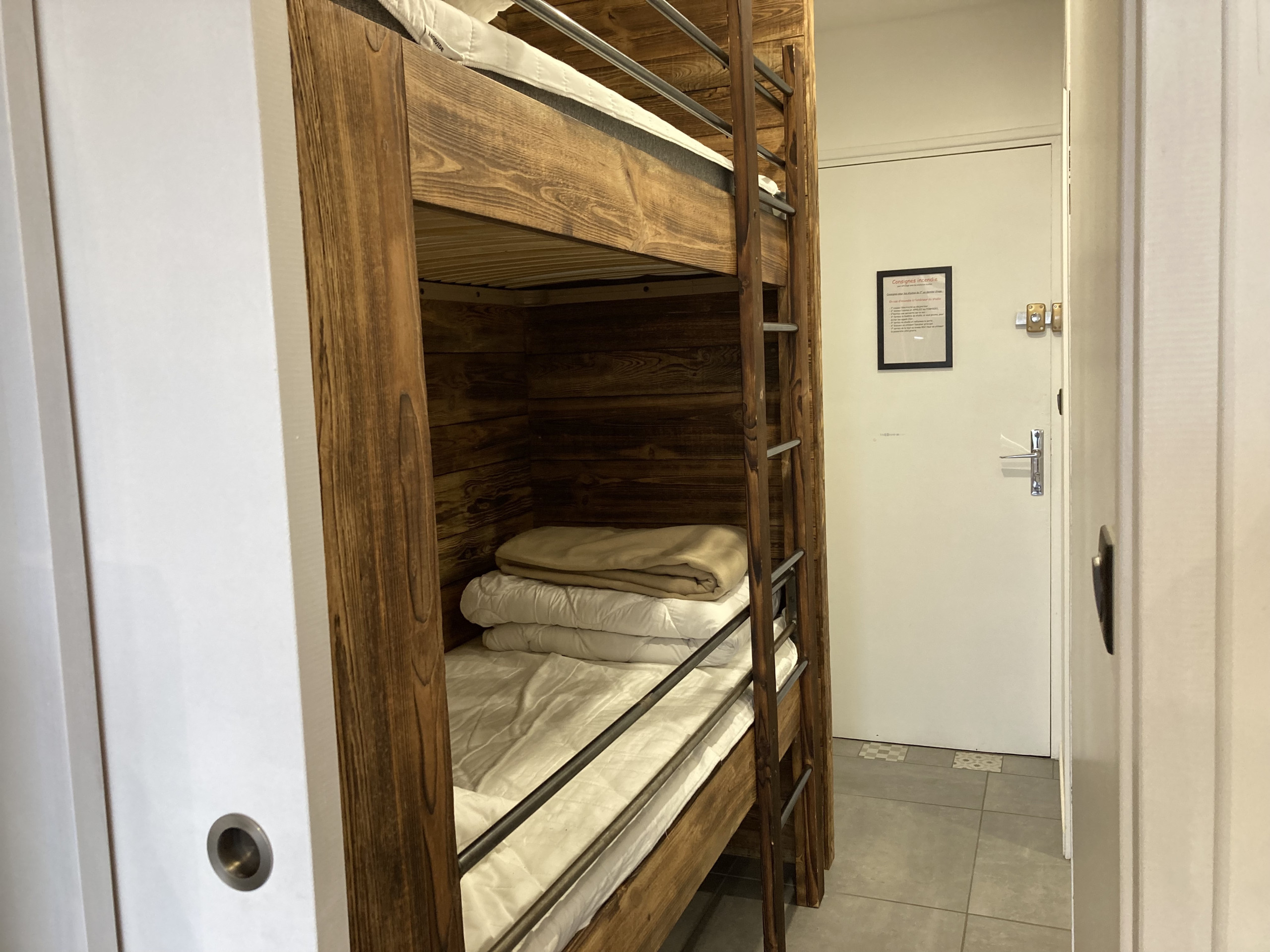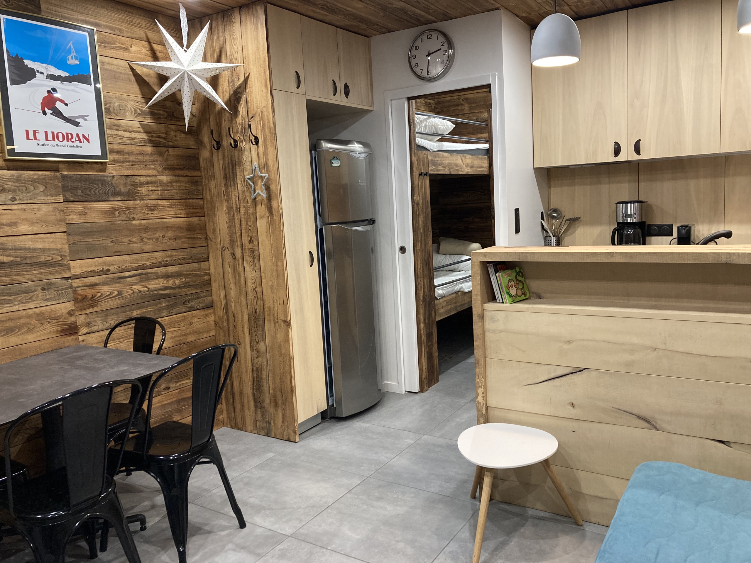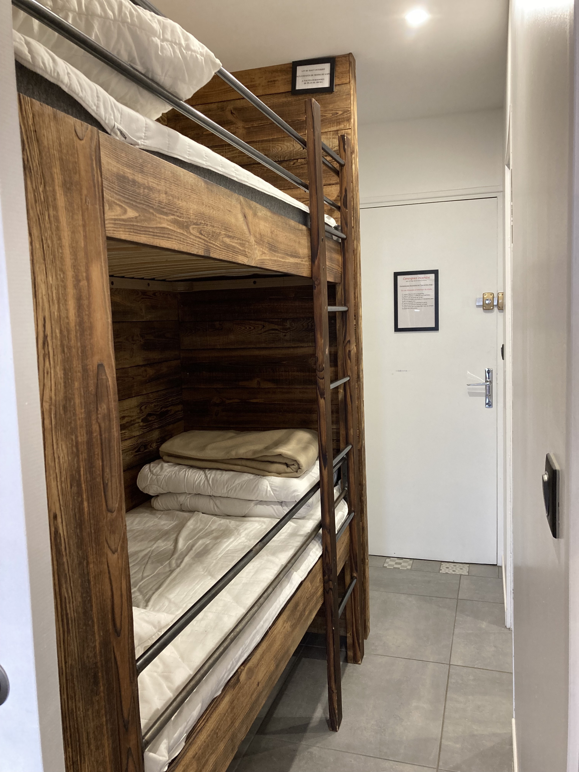 Pour vous accueillir dans un esprit cosy, vous trouverez un coin montagne élégant avec ses 2 couchages superposés en 80x190.